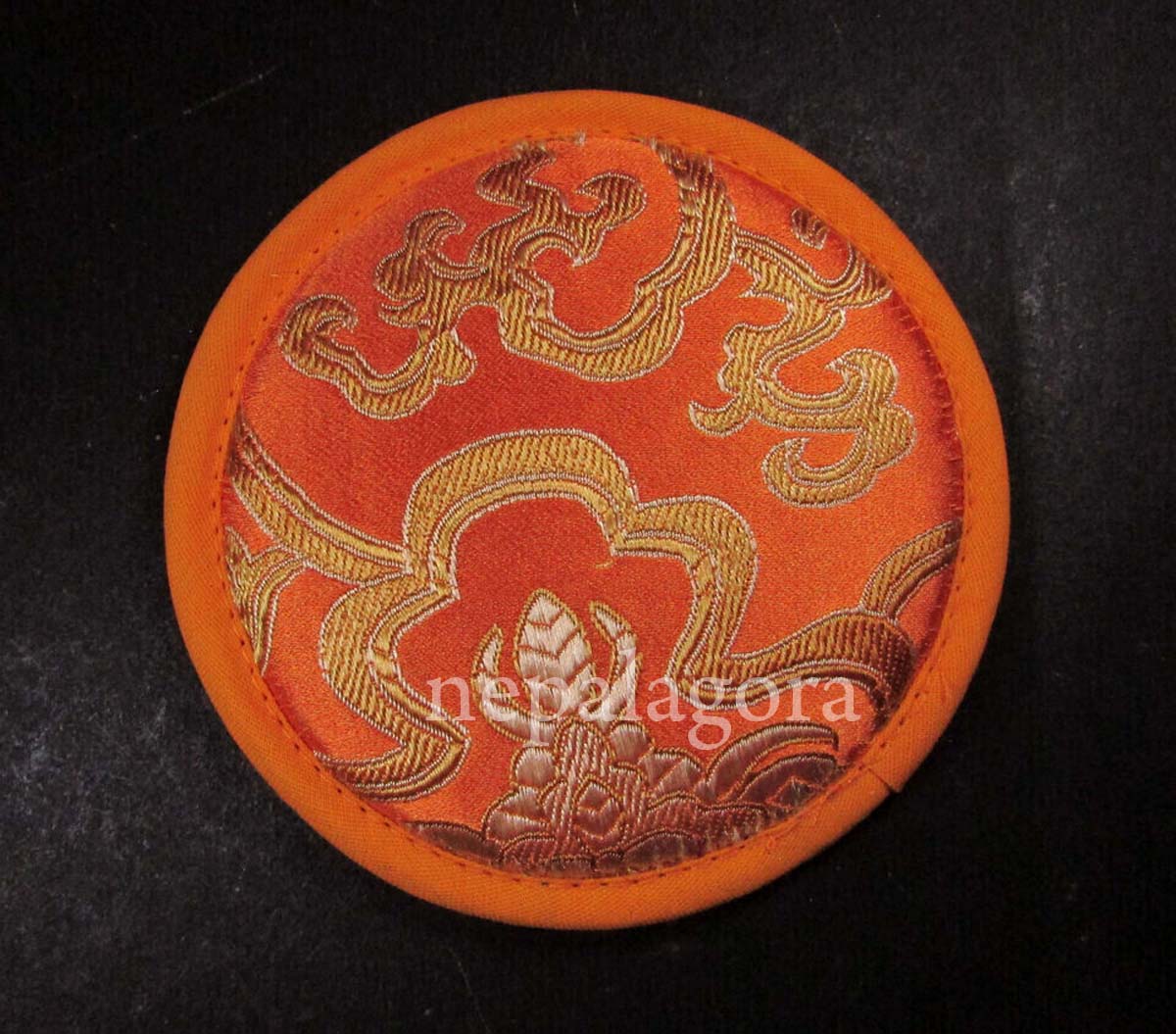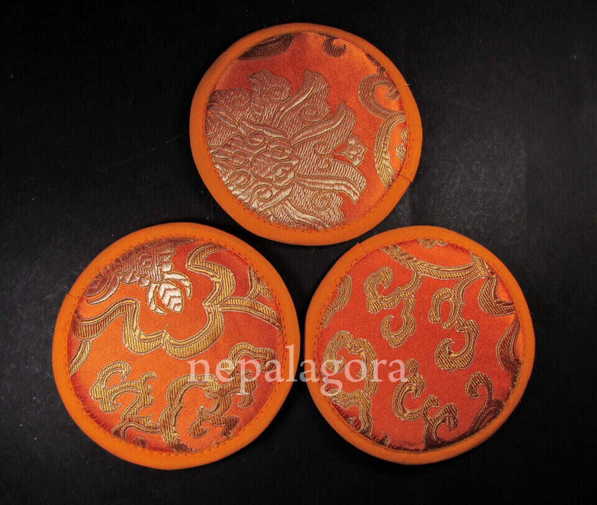 This handmade set of 3 silk brocade Mandala singing bowl cushion pillows measures 10 cm in size. The pillows are adorned with intricate silk brocade designs and are perfect for the singing bowl. The cushions are filled with a soft, plush material that provides comfort and support, making them ideal for use with a singing bowl or as a decorative accent for any room.