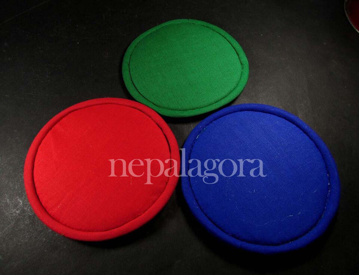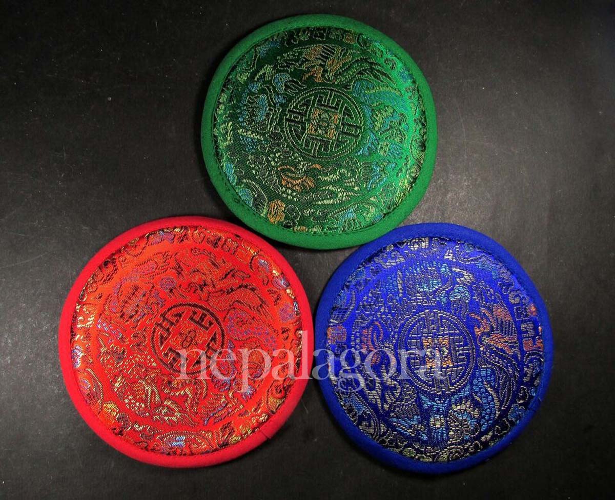 This handmade set of 3 silk brocade Mandala singing bowl cushion pillows measures 12 cm in size. The pillows are adorned with intricate silk brocade designs and are perfect for the singing bowl. The cushions are filled with a soft, plush material that provides comfort and support, making them ideal for use with a singing bowl or as a decorative accent for any room.