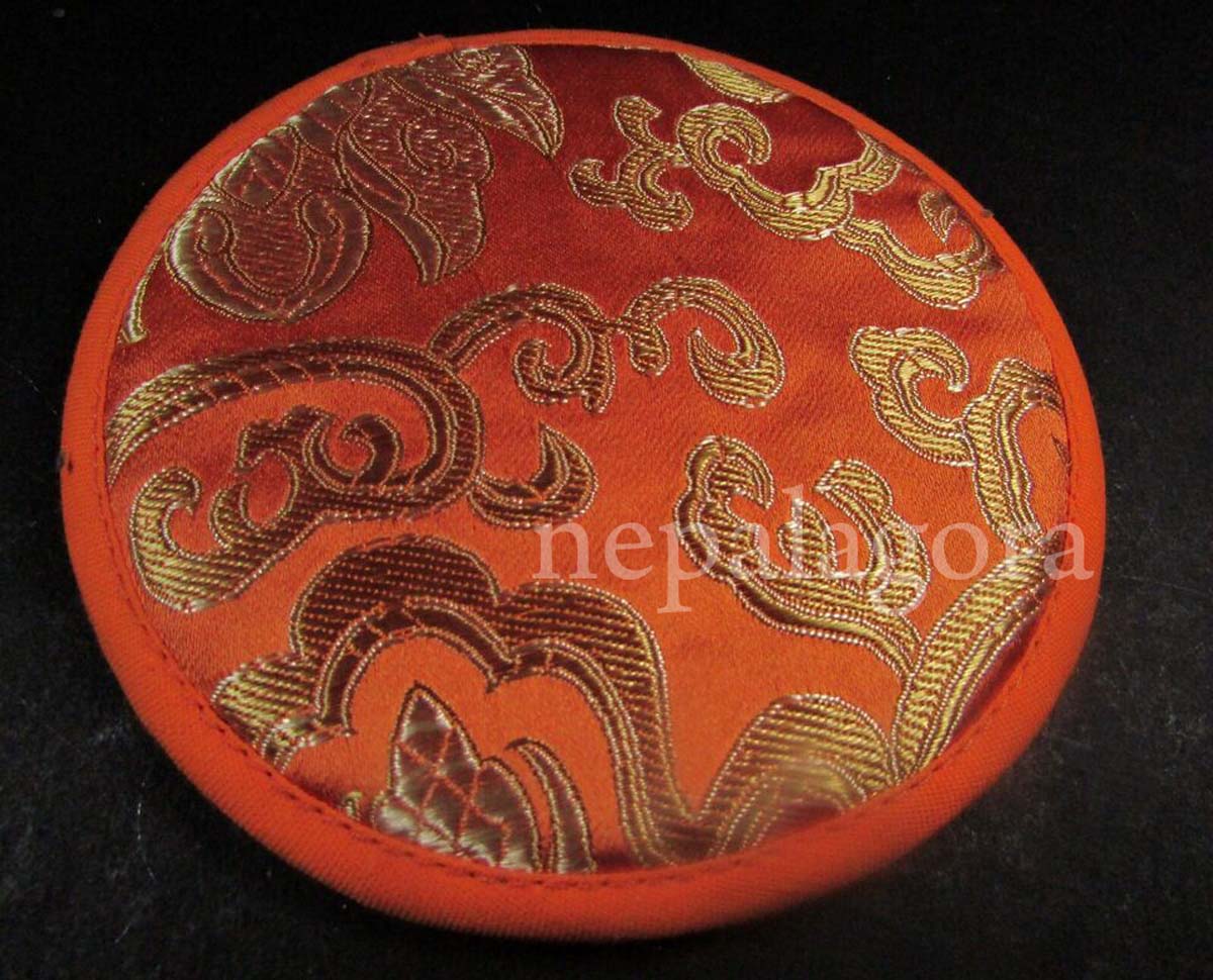 This handmade silk brocade Mandala singing bowl cushion pillows measures 12 cm in size. The pillows are adorned with intricate silk brocade designs and are perfect for the singing bowl. The cushions are filled with a soft, plush material that provides comfort and support, making them ideal for use with a singing bowl or as a decorative accent for any room.
