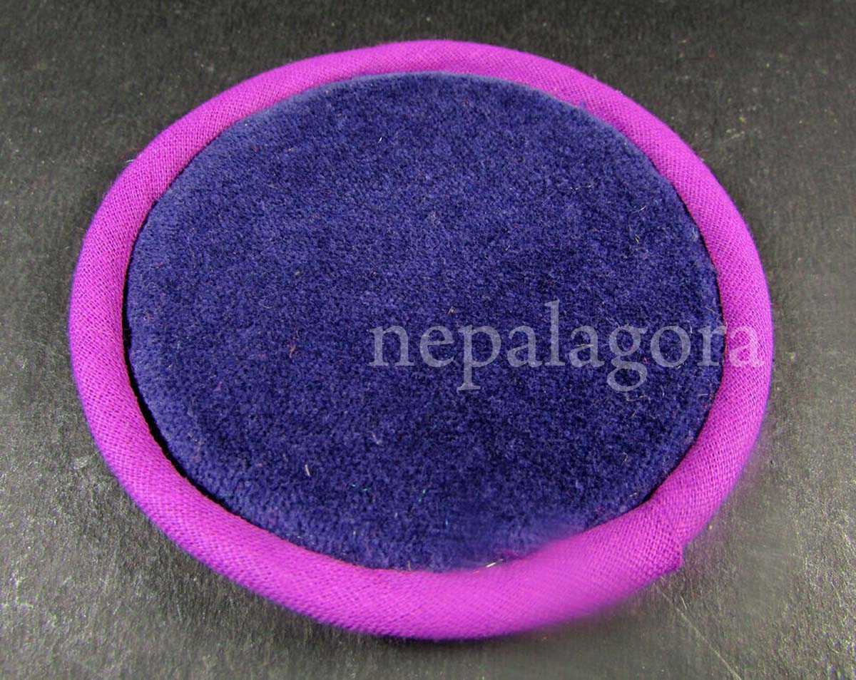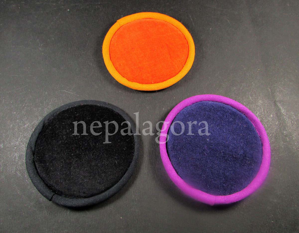 This handmade set of 3 silk/velvet singing bowl cushion pillows measures 8 cm in size. The pillows are adorned with intricate silk brocade designs and are perfect for the singing bowl. The cushions are filled with a soft, plush material that provides comfort and support, making them ideal for use with a singing bowl or as a decorative accent for any room.