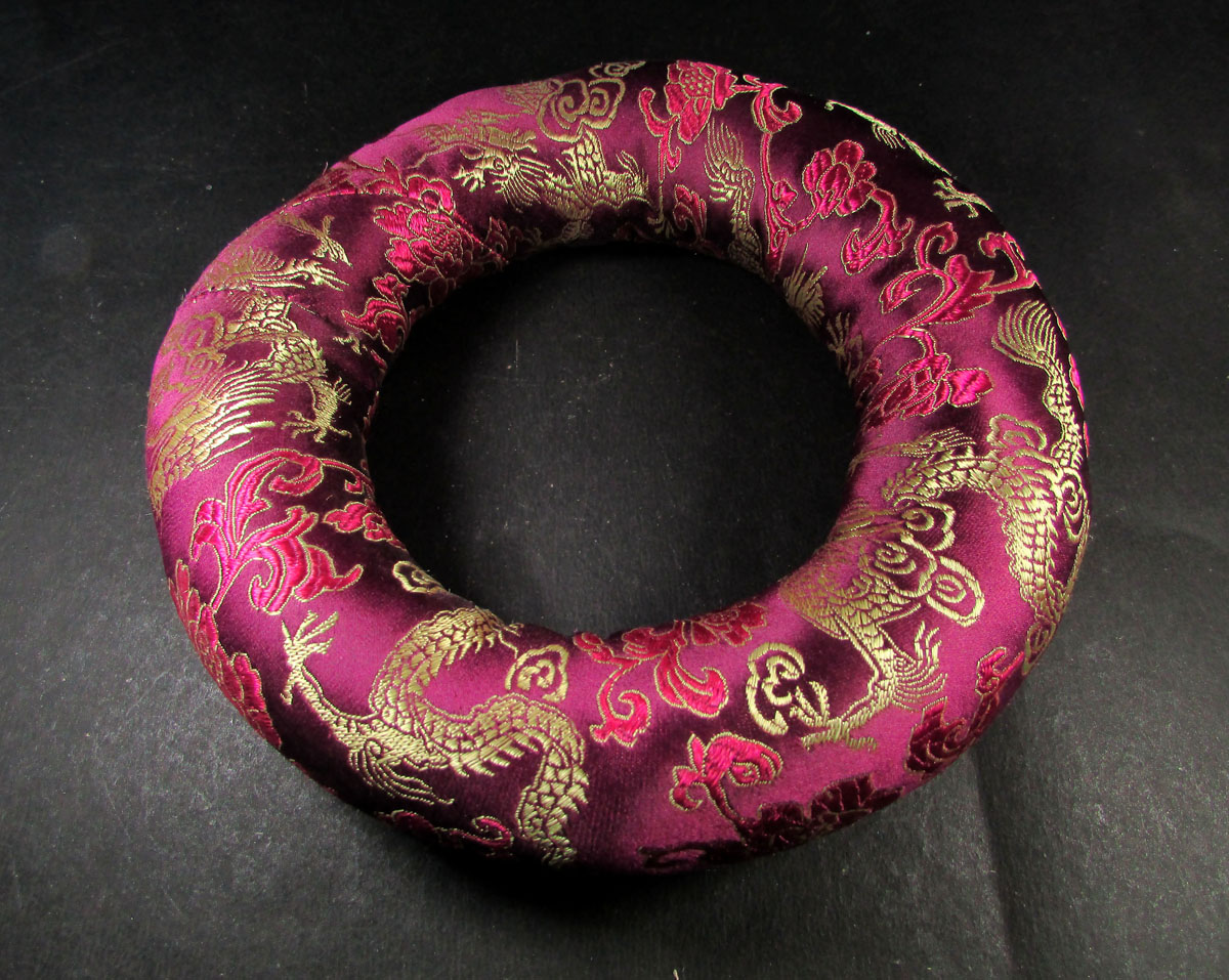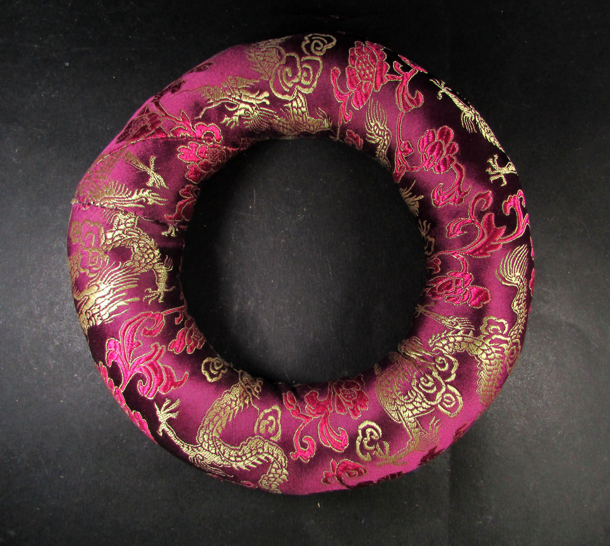 A singing bowl cushion is a specialized cushion designed to support and cradle a singing bowl during meditation practice. It helps to: