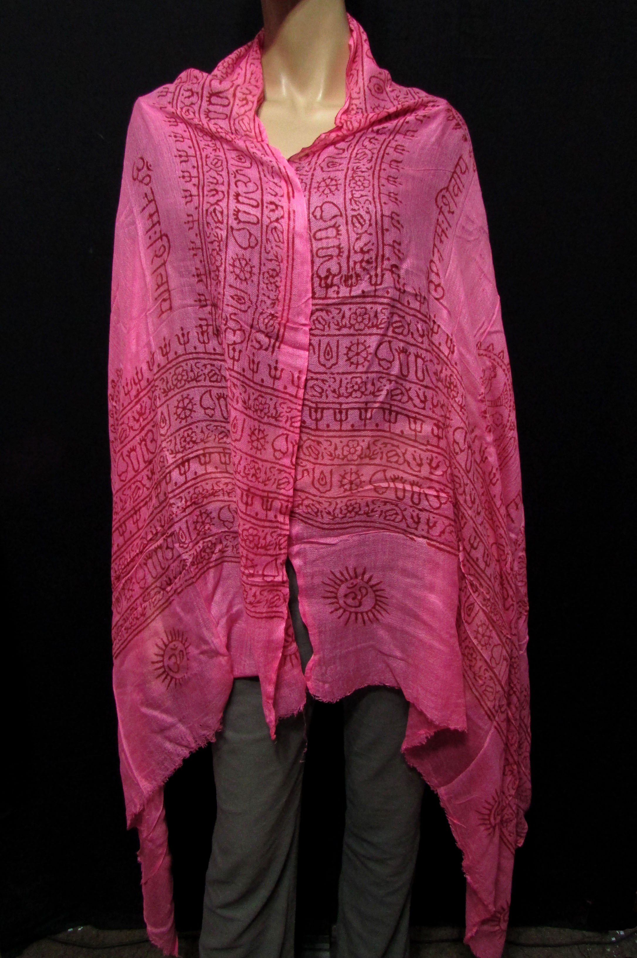 This graceful large cotton "Om Namaha Shivaya" Lord Natraj and other sacred symbols printed is soft to touch, luxurious to wear and can be used as a scarf, a wrap, throw or as a shawl. It is all handmade by local artisans in Nepal. It is very soft, gentle yet light which can be used as wrap. Gentle hand wash or steam clean.