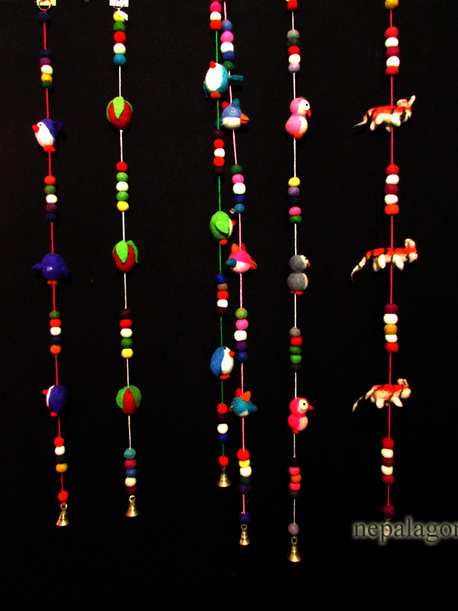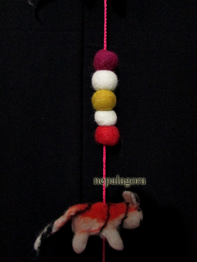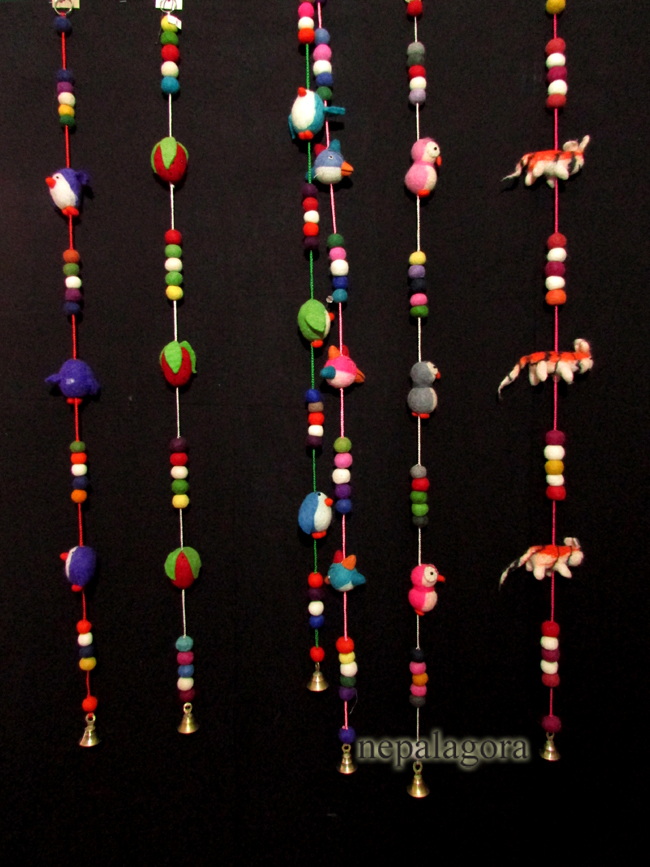 - Handmade Decorative Multi color Felt Pom Pom Wool Ball Wall Door Hanging Garland Nepal - F41