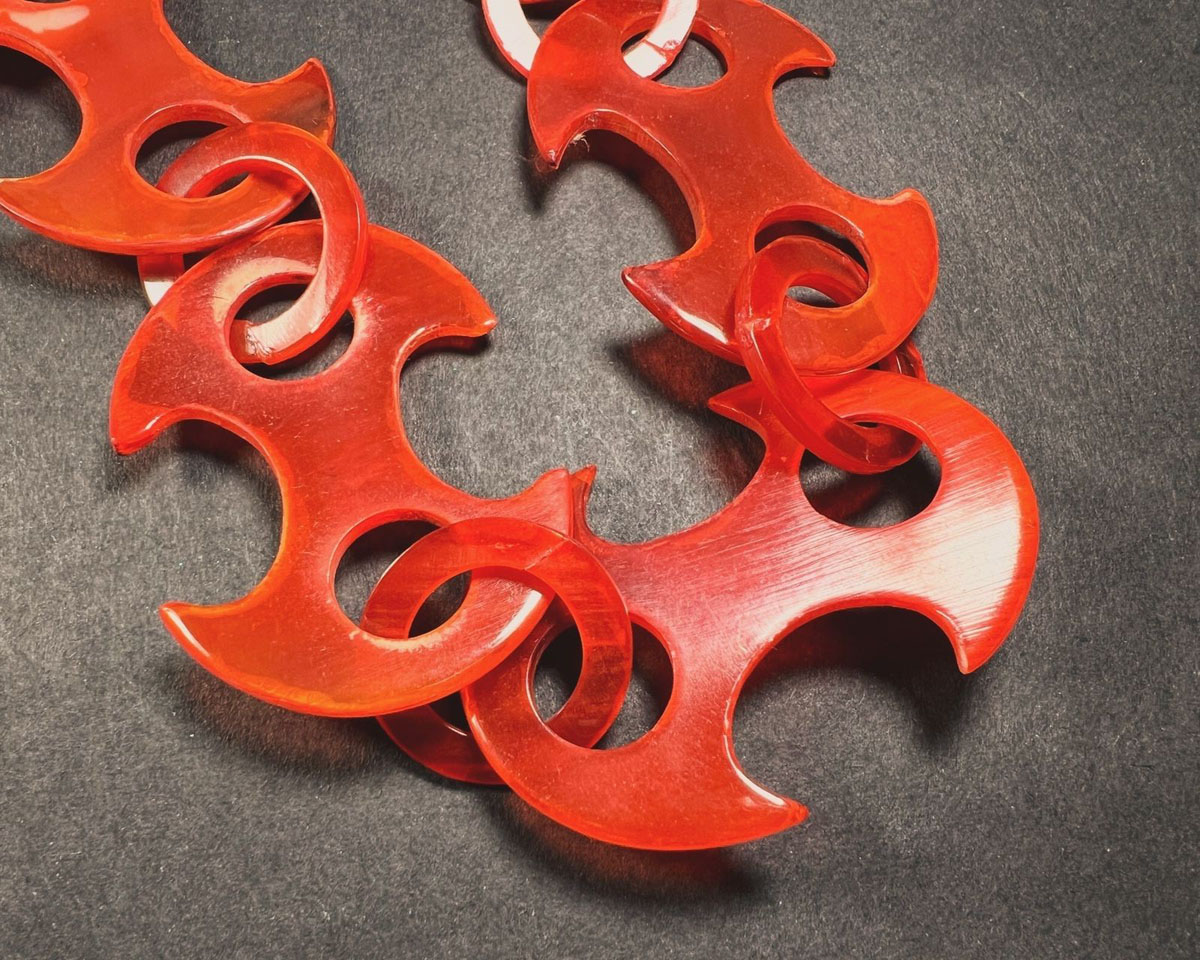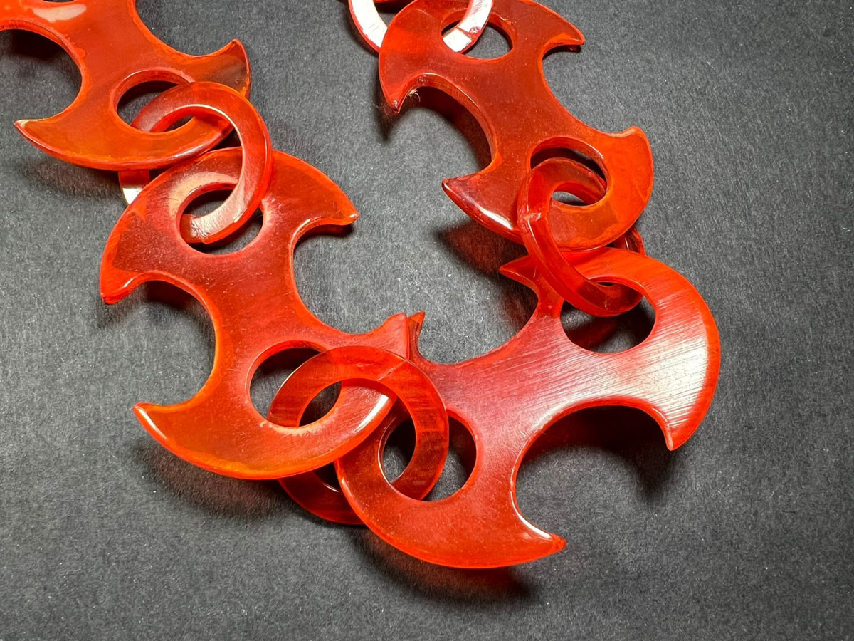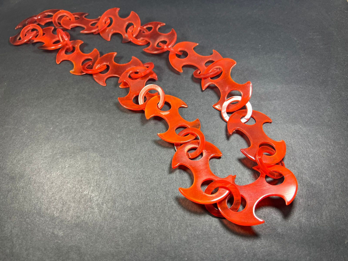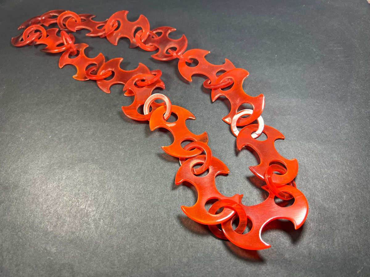 The handmade horn link necklace is a traditional piece of jewelry worn by Gypsy people (also known as Romani people) that has been a part of their cultural heritage for centuries. The necklace is made from materials like silver, gold, or copper and features intricately crafted links resembling horns or curls. It is believed to bring good luck, prosperity, and spiritual protection, and is said to protect against evil spirits, bring good fortune, enhance well-being, and attract positive energies. Skilled Gypsy artisans create the necklaces using techniques like hammering, shaping, and soldering, often passing down the craft from generation to generation. The necklaces are worn by both men and women in the Gypsy community and may be adorned with precious stones or embellishments. Today, these handmade necklaces are prized by collectors and admirers of traditional jewelry and cultural heritage.