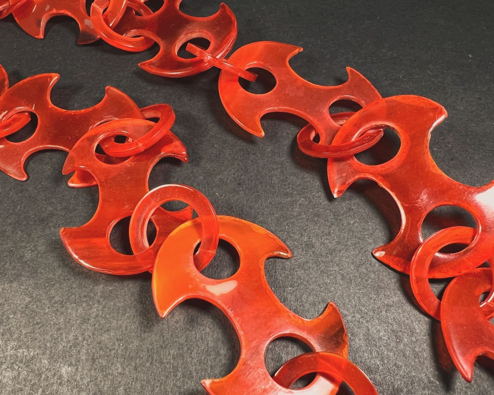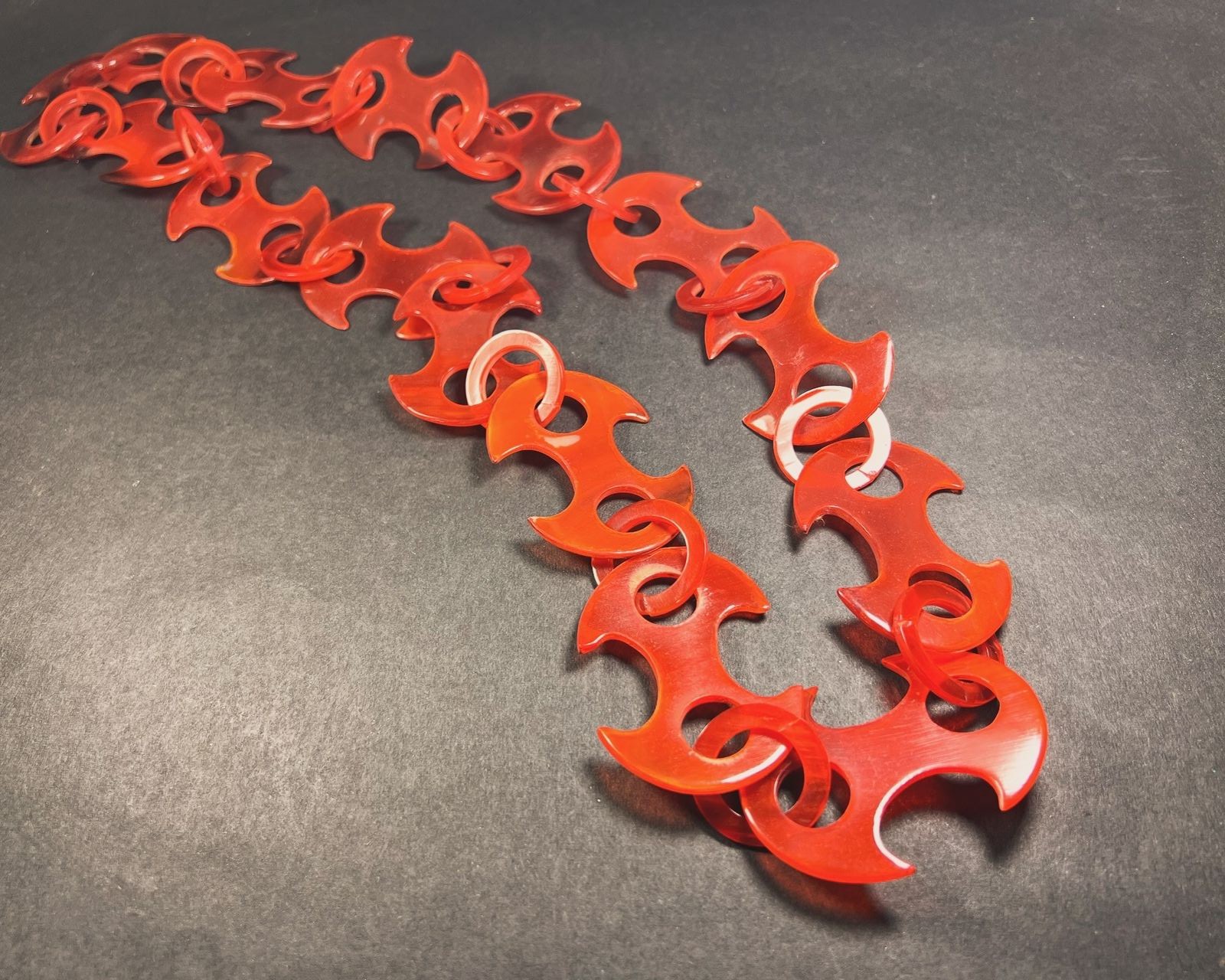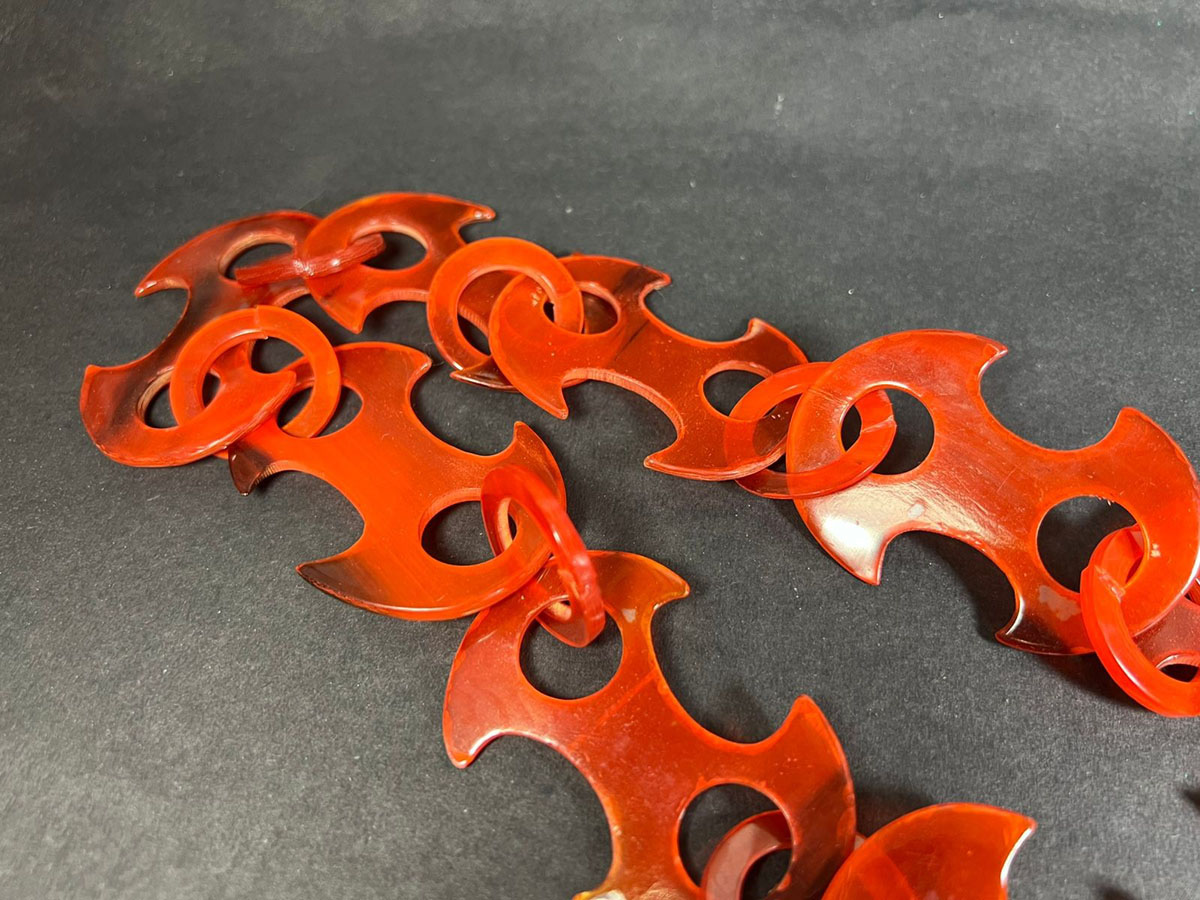 The handmade horn link necklace is a traditional piece of jewelry worn by Gypsy people (also known as Romani people) that has been a part of their cultural heritage for centuries. The necklace is made from materials like silver, gold, or copper and features intricately crafted links resembling horns or curls. It is believed to bring good luck, prosperity, and spiritual protection, and is said to protect against evil spirits, bring good fortune, enhance well-being, and attract positive energies. Skilled Gypsy artisans create the necklaces using techniques like hammering, shaping, and soldering, often passing down the craft from generation to generation. The necklaces are worn by both men and women in the Gypsy community and may be adorned with precious stones or embellishments. Today, these handmade necklaces are prized by collectors and admirers of traditional jewelry and cultural heritage.