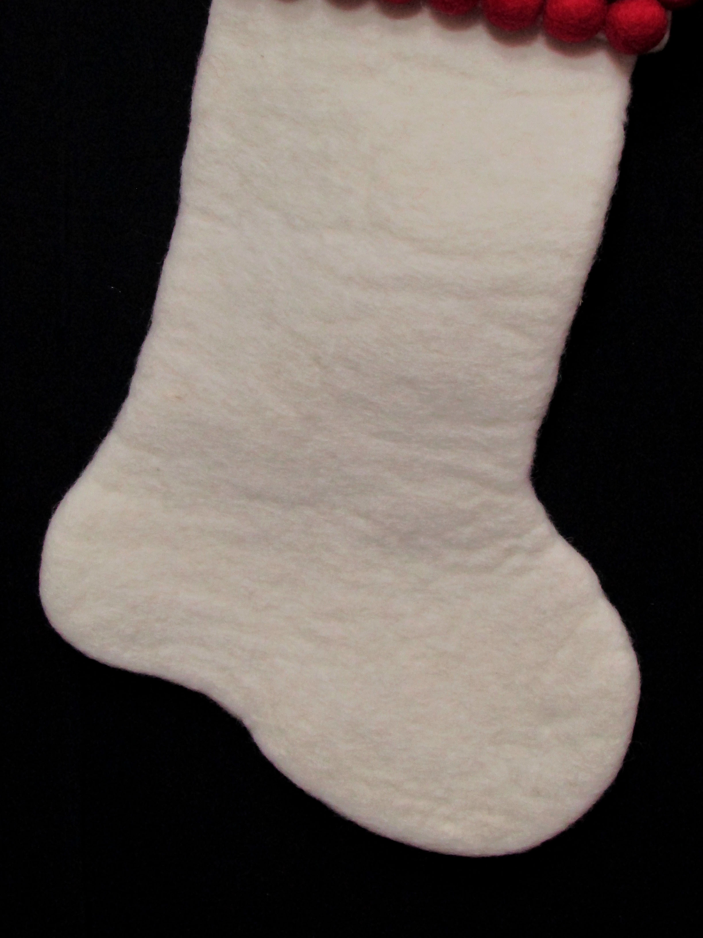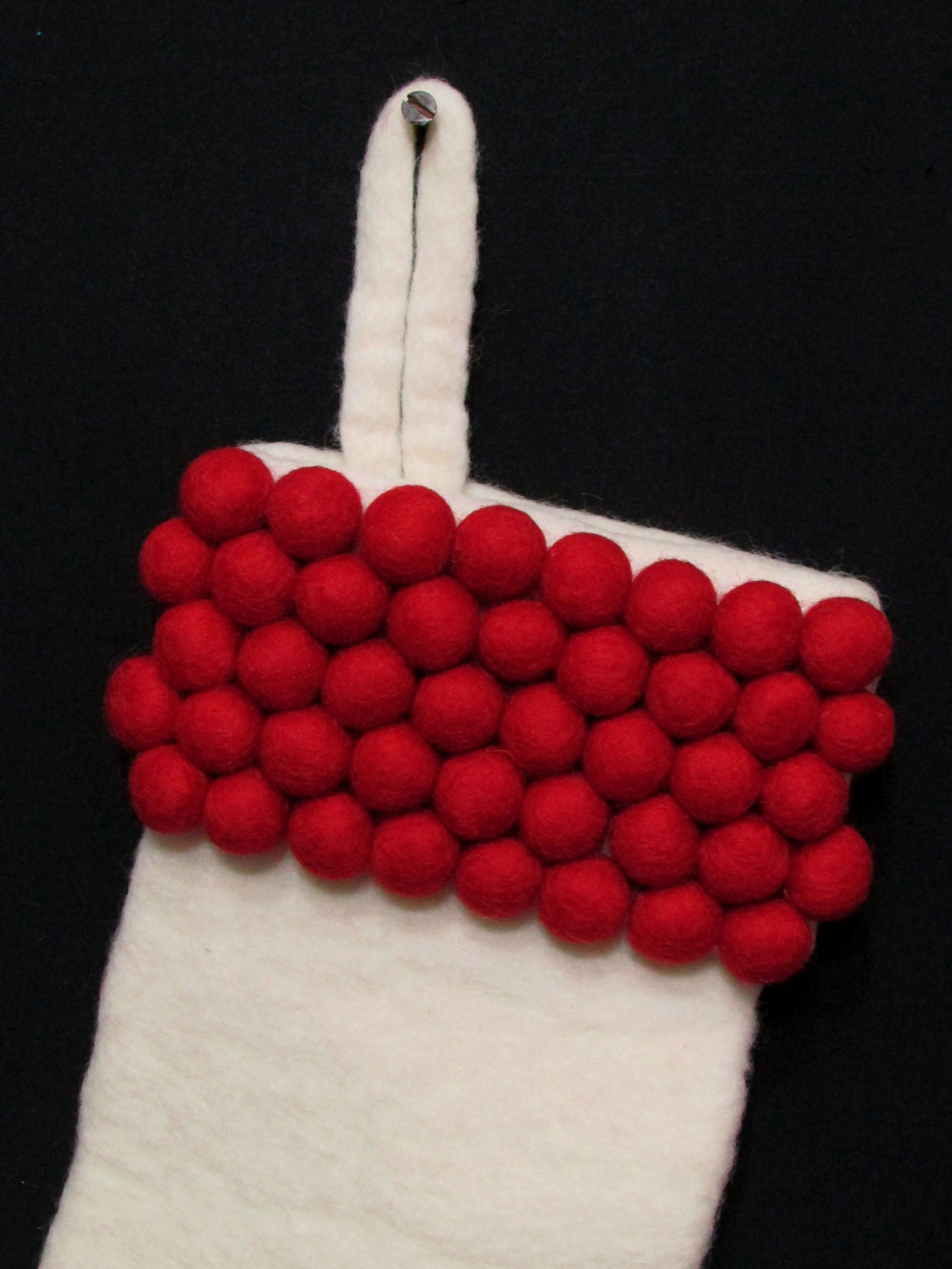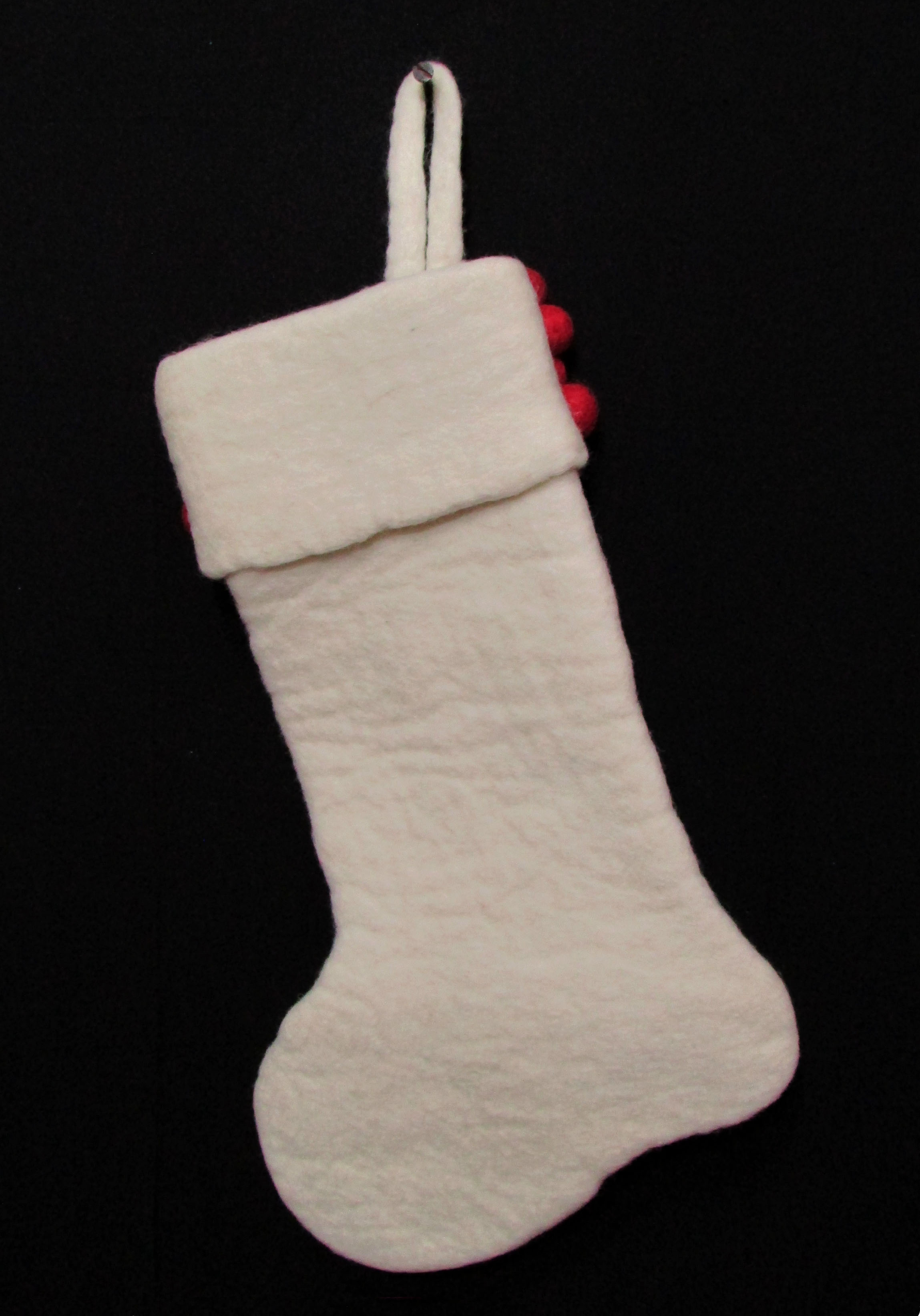 - Handmade White Felted pom pom wool Holiday Christmas Stocking Hanging Decor Nepal - F138