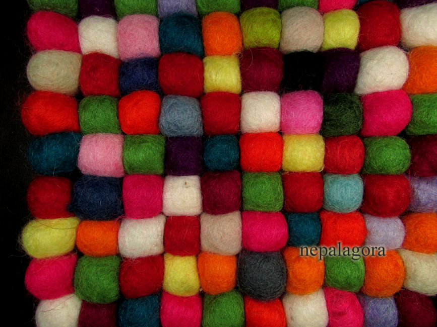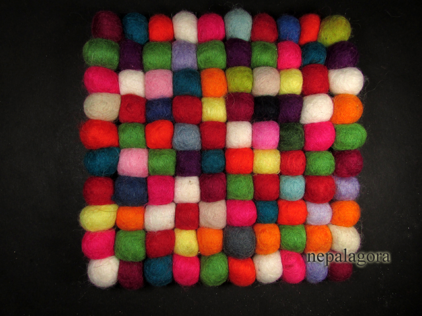 - Handmade wool Felt Ball multi color square 20 cm hot pot pad mat coaster trivet Nepal - F65