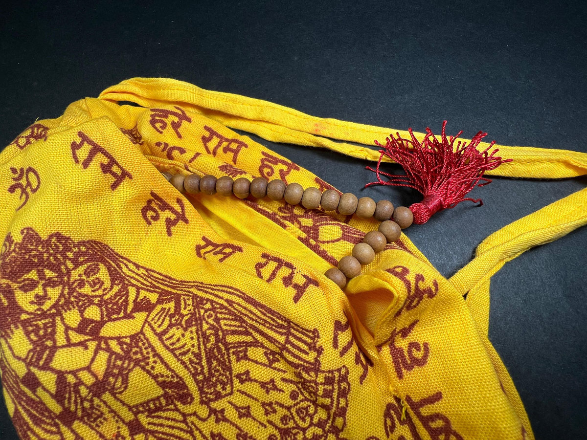 Prayer Mala Bag: The prayer mala bag is a small, usually cloth or fabric bag, that is used for a set of 108 beads (or sometimes 27 beads). The mala is used to count the repetitions of the mantra, allowing the practitioner to focus on their meditation and spiritual practice.