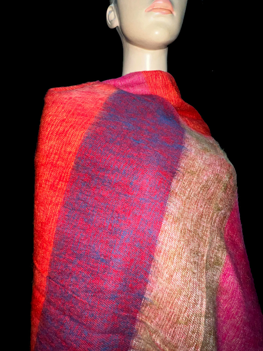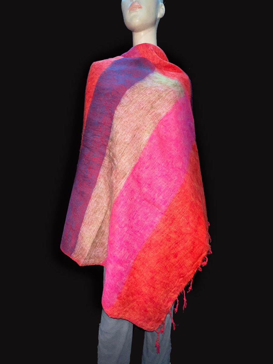 Wrap yourself in warmth and tradition with this beautifully handcrafted Tribal Ethnic Yak Wool Stripe Shawl, directly from the highlands of Nepal. Made from a luxurious blend of yak wool and cotton, this handloomed piece features a soft, cozy texture that feels gentle against the skin. Ideal for chilly days and cool evenings, it works perfectly as a large shawl, light winter blanket, meditation wrap, or a stylish bohemian throw.