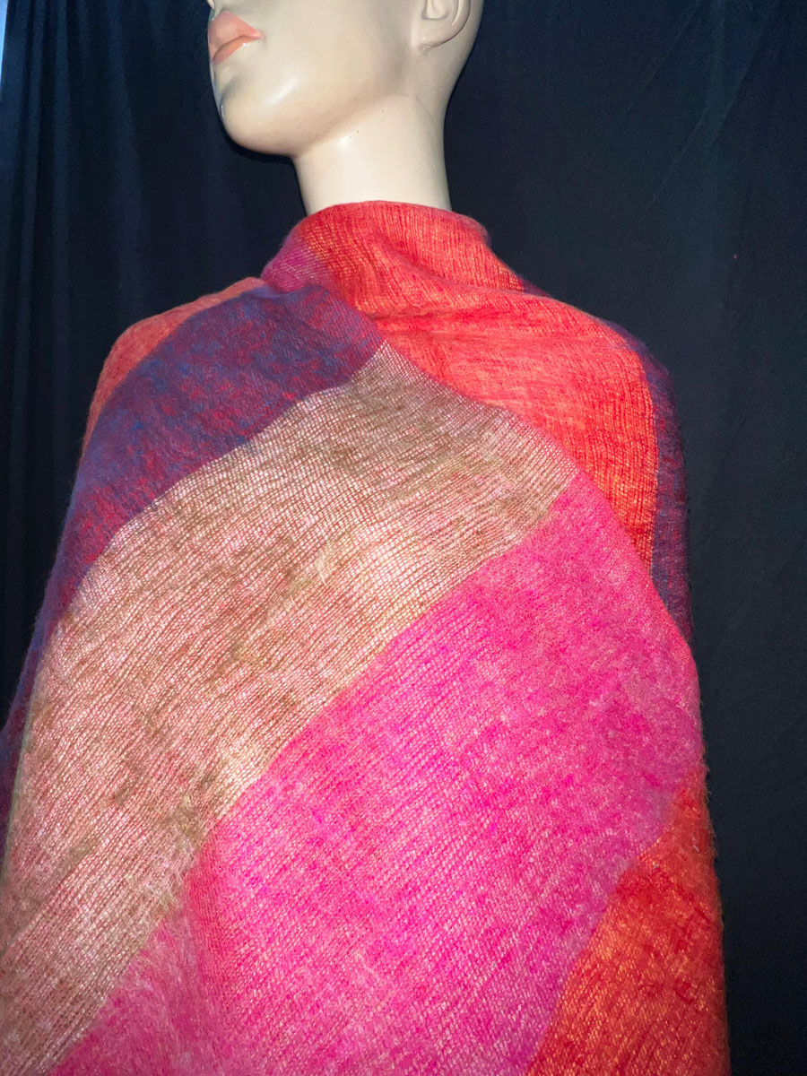 Sheep and Yak Wool Soft Warm Tribal Ethnic Handloomed Big Stripe Shawl from Nepal