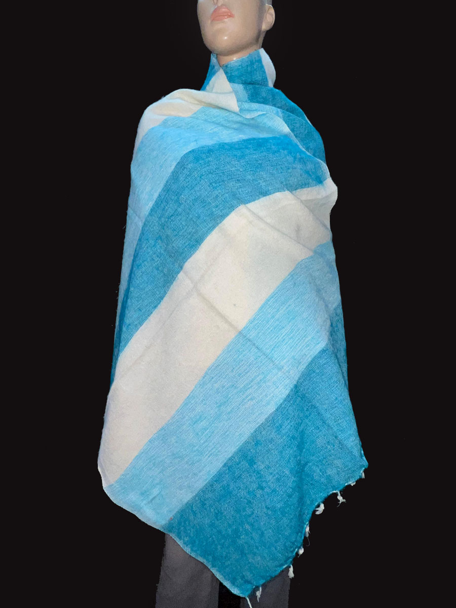 Wrap yourself in warmth and tradition with this beautifully handcrafted Tribal Ethnic Yak Wool Stripe Shawl, directly from the highlands of Nepal. Made from a luxurious blend of yak wool and cotton, this handloomed piece features a soft, cozy texture that feels gentle against the skin. Ideal for chilly days and cool evenings, it works perfectly as a large shawl, light winter blanket, meditation wrap, or a stylish bohemian throw.