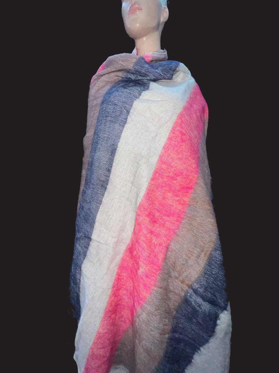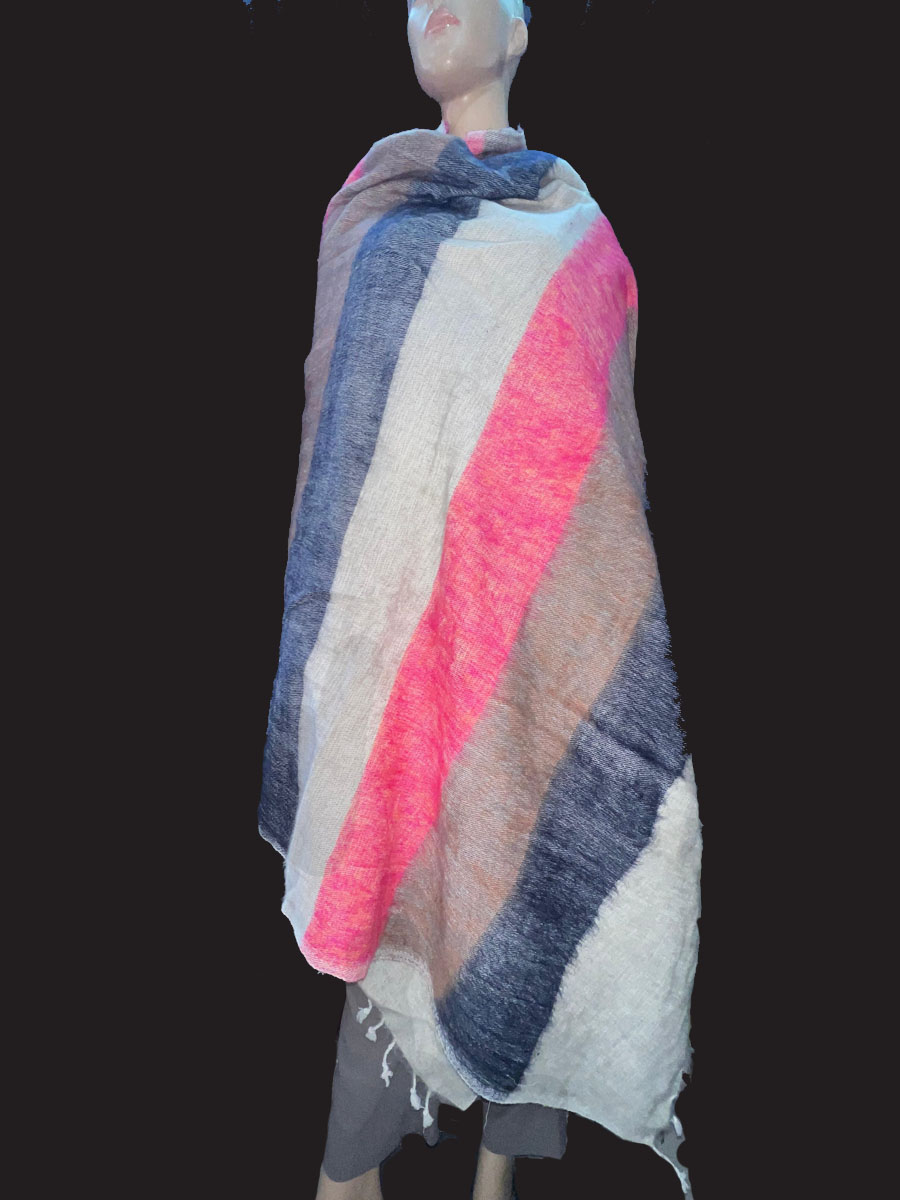 Wrap yourself in warmth and tradition with this beautifully handcrafted Tribal Ethnic Yak Wool Stripe Shawl, directly from the highlands of Nepal. Made from a luxurious blend of yak wool and cotton, this handloomed piece features a soft, cozy texture that feels gentle against the skin. Ideal for chilly days and cool evenings, it works perfectly as a large shawl, light winter blanket, meditation wrap, or a stylish bohemian throw.
