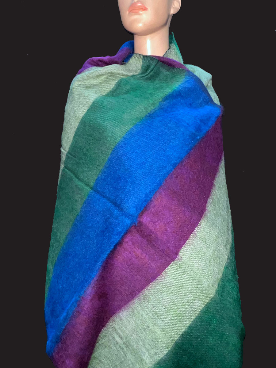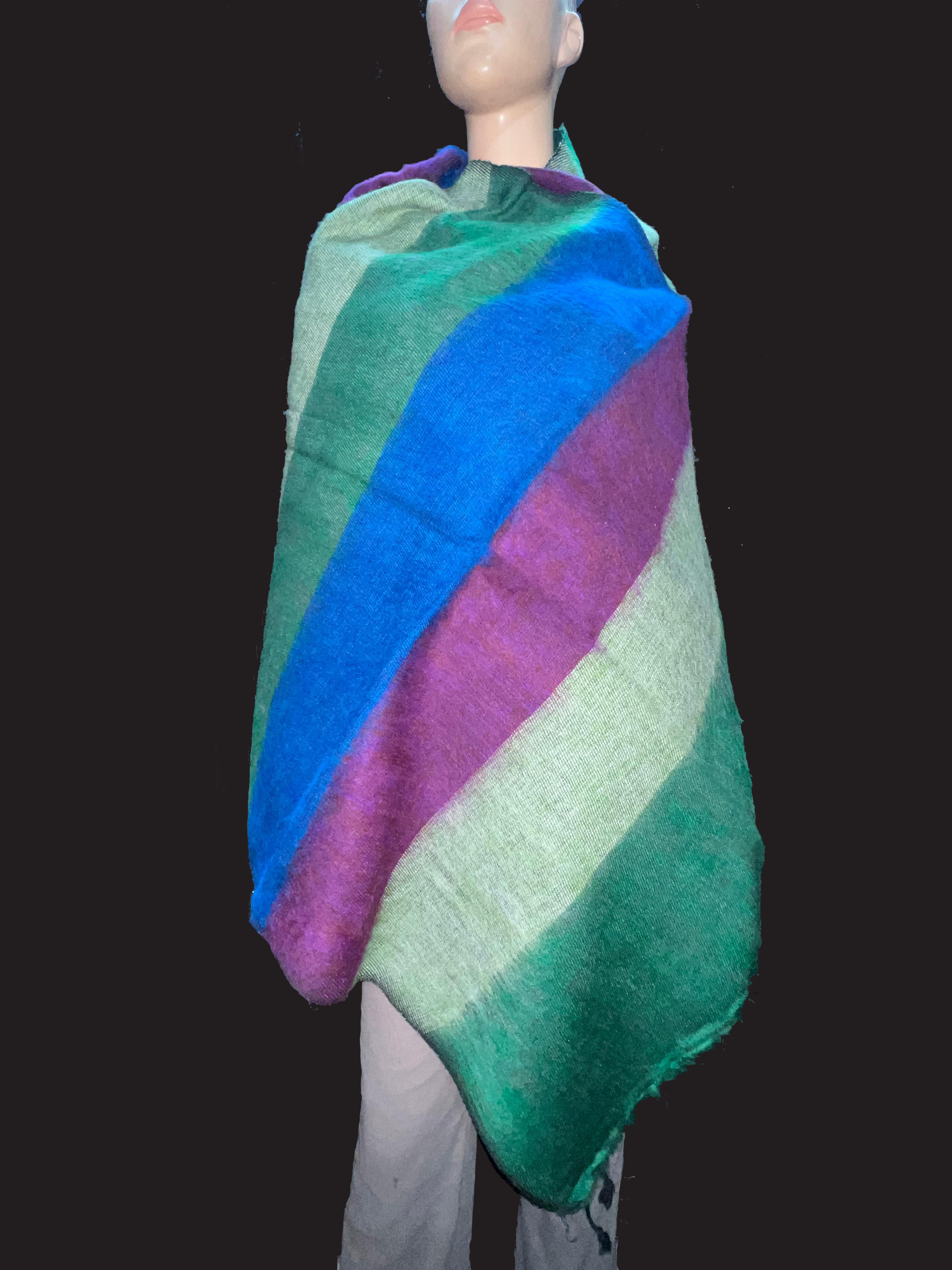 Wrap yourself in warmth and tradition with this beautifully handcrafted Tribal Ethnic Yak Wool Stripe Shawl, directly from the highlands of Nepal. Made from a luxurious blend of yak wool and cotton, this handloomed piece features a soft, cozy texture that feels gentle against the skin. Ideal for chilly days and cool evenings, it works perfectly as a large shawl, light winter blanket, meditation wrap, or a stylish bohemian throw.