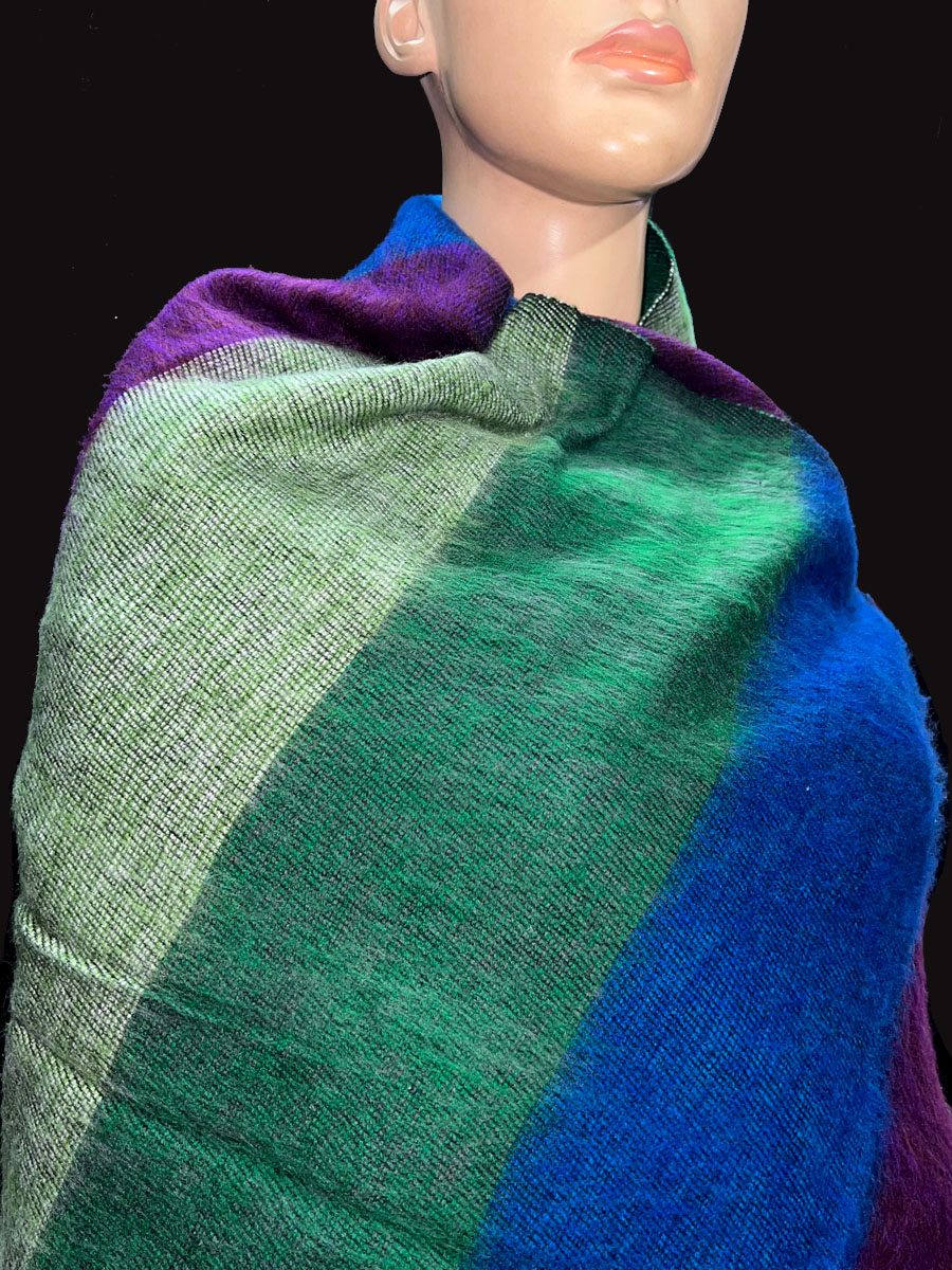 Sheep and Yak Wool Soft Warm Tribal Ethnic Handloomed Big Stripe Shawl from Nepal