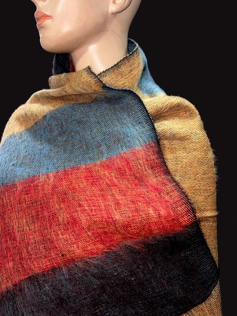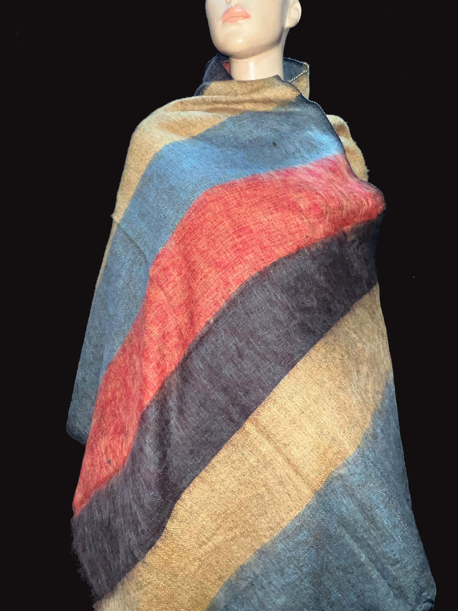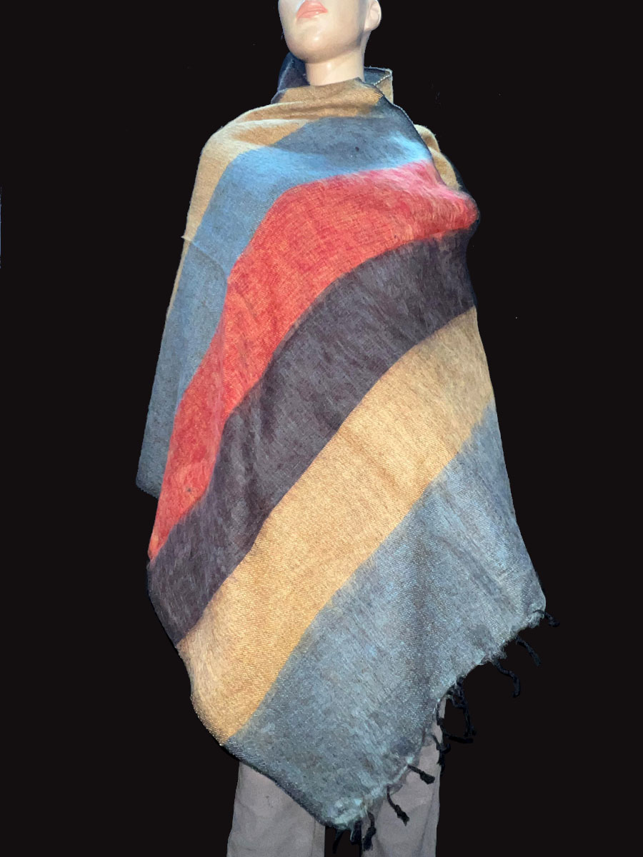 Wrap yourself in warmth and tradition with this beautifully handcrafted Tribal Ethnic Yak Wool Stripe Shawl, directly from the highlands of Nepal. Made from a luxurious blend of yak wool and cotton, this handloomed piece features a soft, cozy texture that feels gentle against the skin. Ideal for chilly days and cool evenings, it works perfectly as a large shawl, light winter blanket, meditation wrap, or a stylish bohemian throw.
