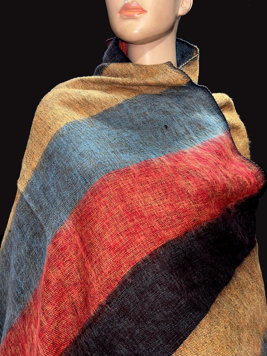 Sheep and Yak Wool Soft Warm Tribal Ethnic Handloomed Big Stripe Shawl from Nepal