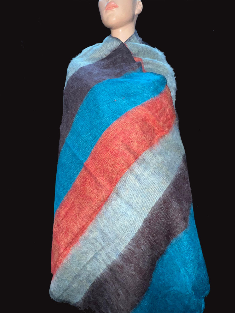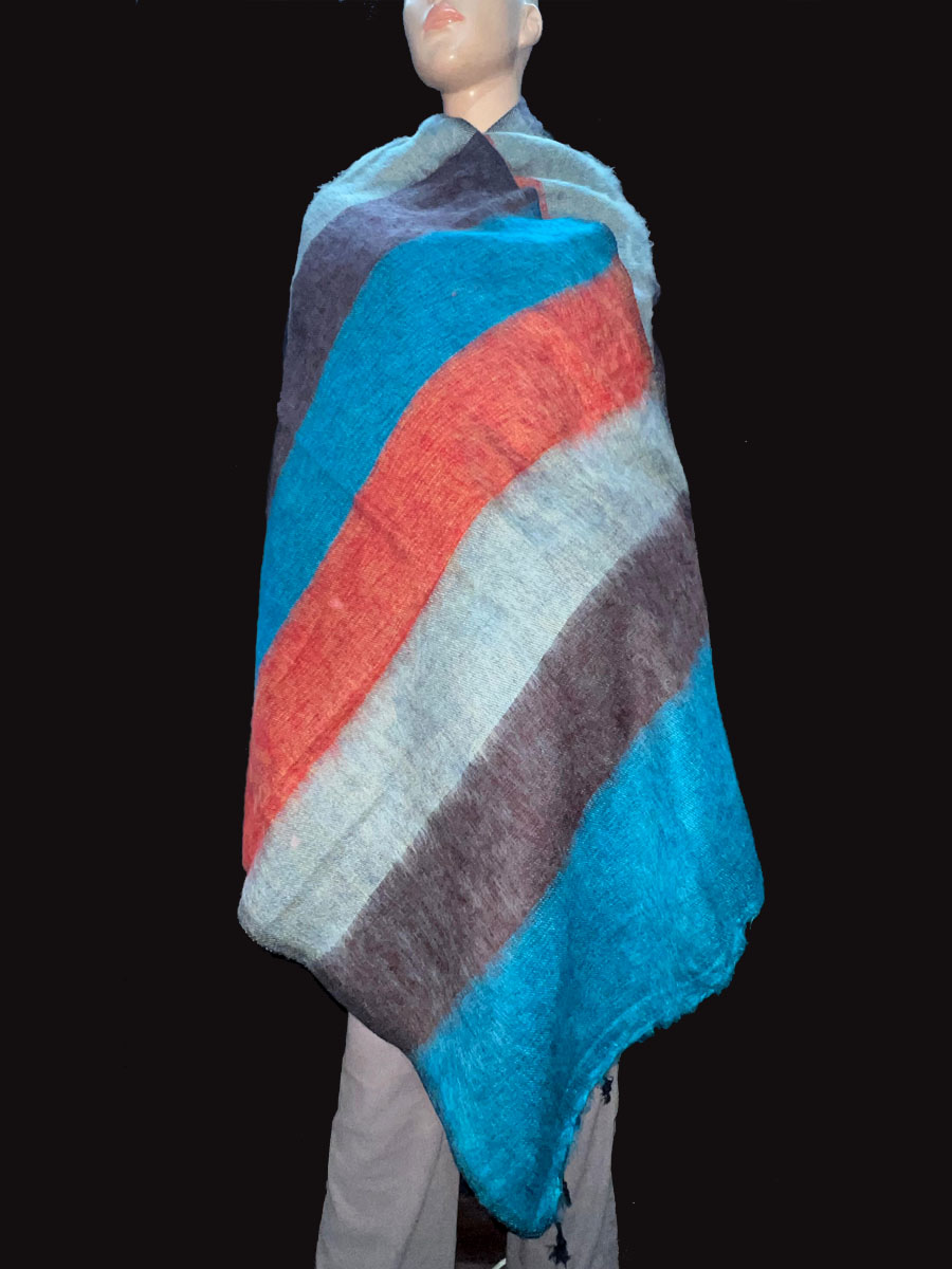 Wrap yourself in warmth and tradition with this beautifully handcrafted Tribal Ethnic Yak Wool Stripe Shawl, directly from the highlands of Nepal. Made from a luxurious blend of yak wool and cotton, this handloomed piece features a soft, cozy texture that feels gentle against the skin. Ideal for chilly days and cool evenings, it works perfectly as a large shawl, light winter blanket, meditation wrap, or a stylish bohemian throw.