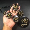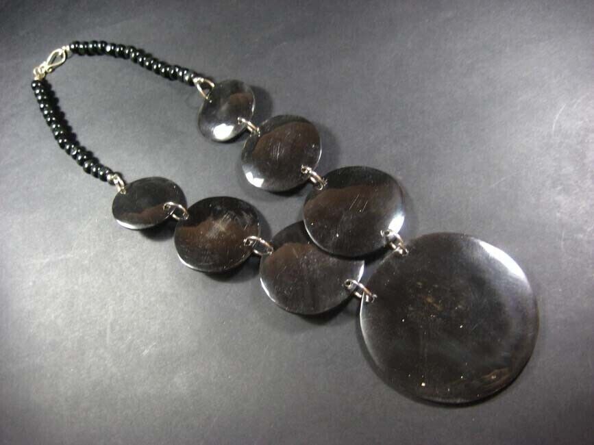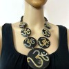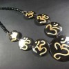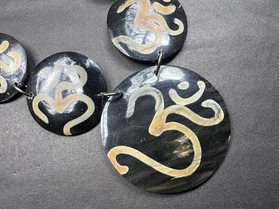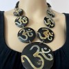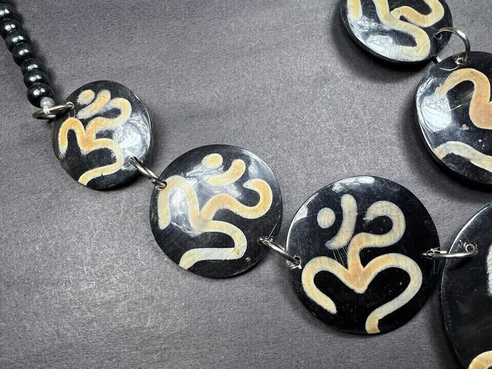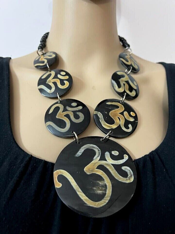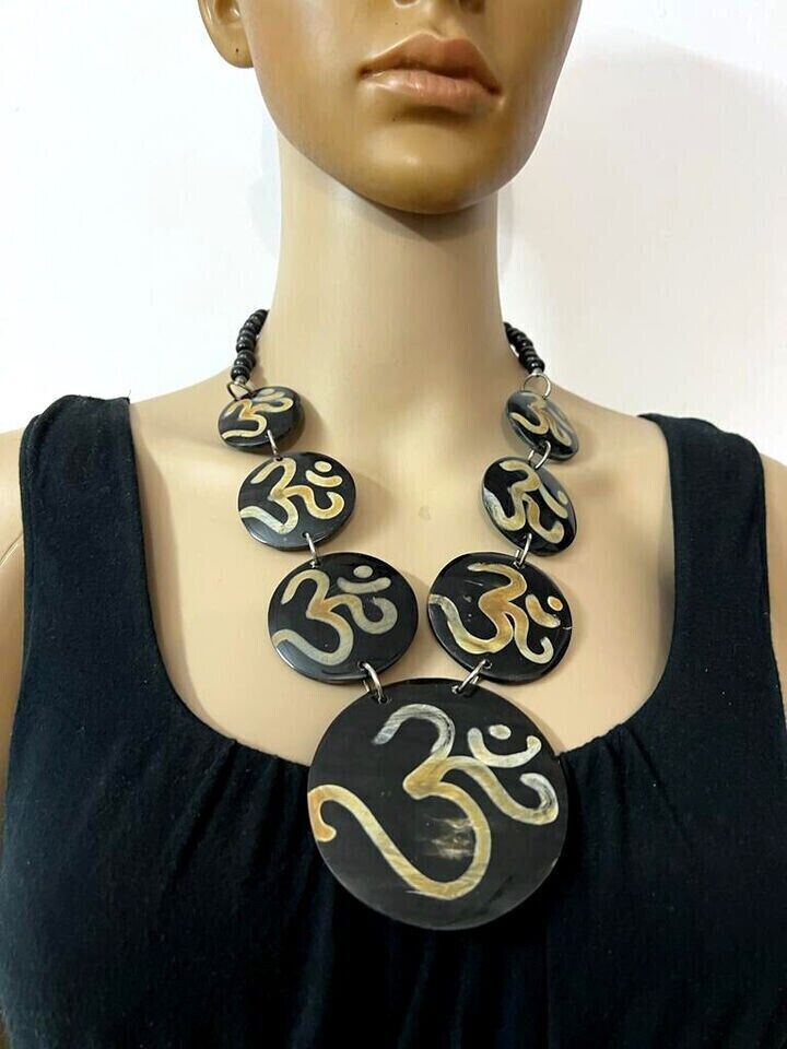 This is a lovely Hindu Om mantra horn beads tribal Naga gypsy Bold Necklace from India. The small black beads are made of wood.