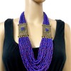 Embrace the vibrant and eclectic spirit of tribal design with this Tibetan Gypsy-inspired necklace. This statement piece features a striking combination of resin and metal beads, arranged in a bold two-strand collar style that elegantly frames the neckline.