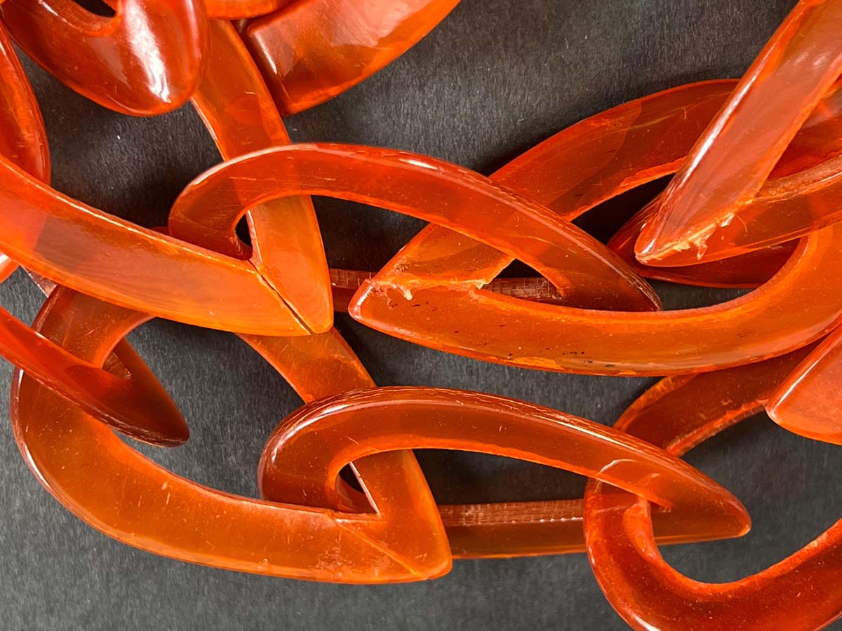 It is an ethnic Naga, Tibetan, Bold Orange color horn Necklace handmade from Nepal.