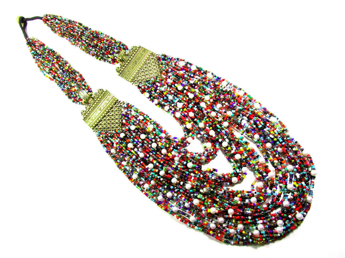 - Color/Tone: Vibrant multi-color beads with brass accents.