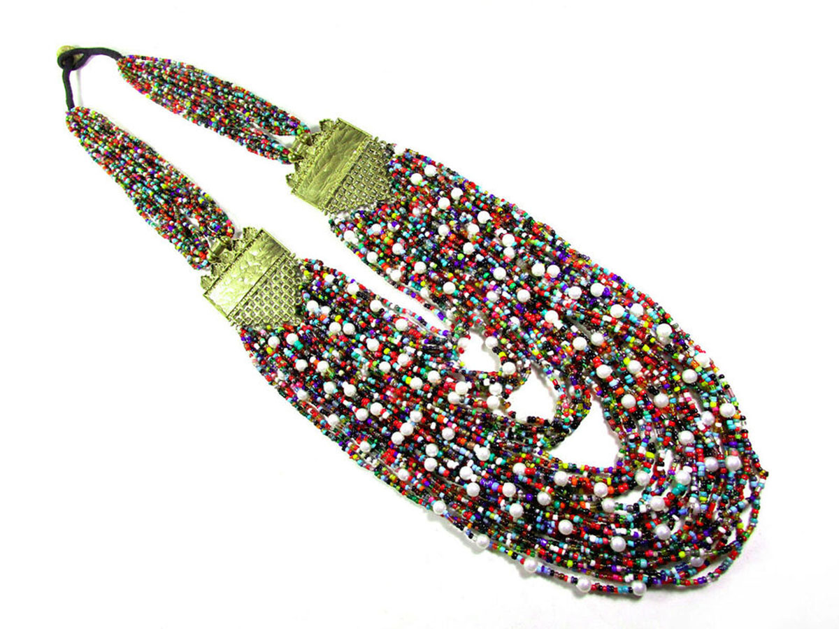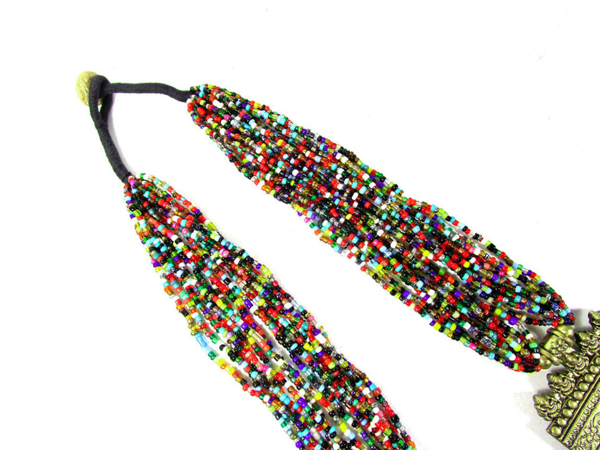 Add a touch of elegance and tradition to your wardrobe with this exquisite handcrafted multi-color glass bead necklace from India. Brand new and unique, this piece features: