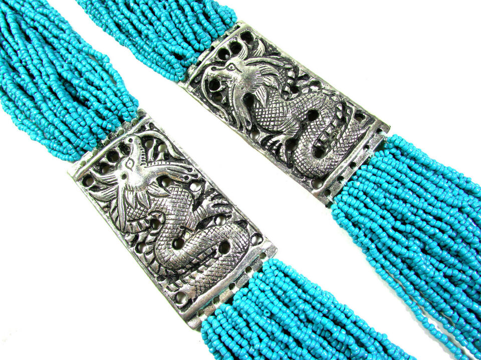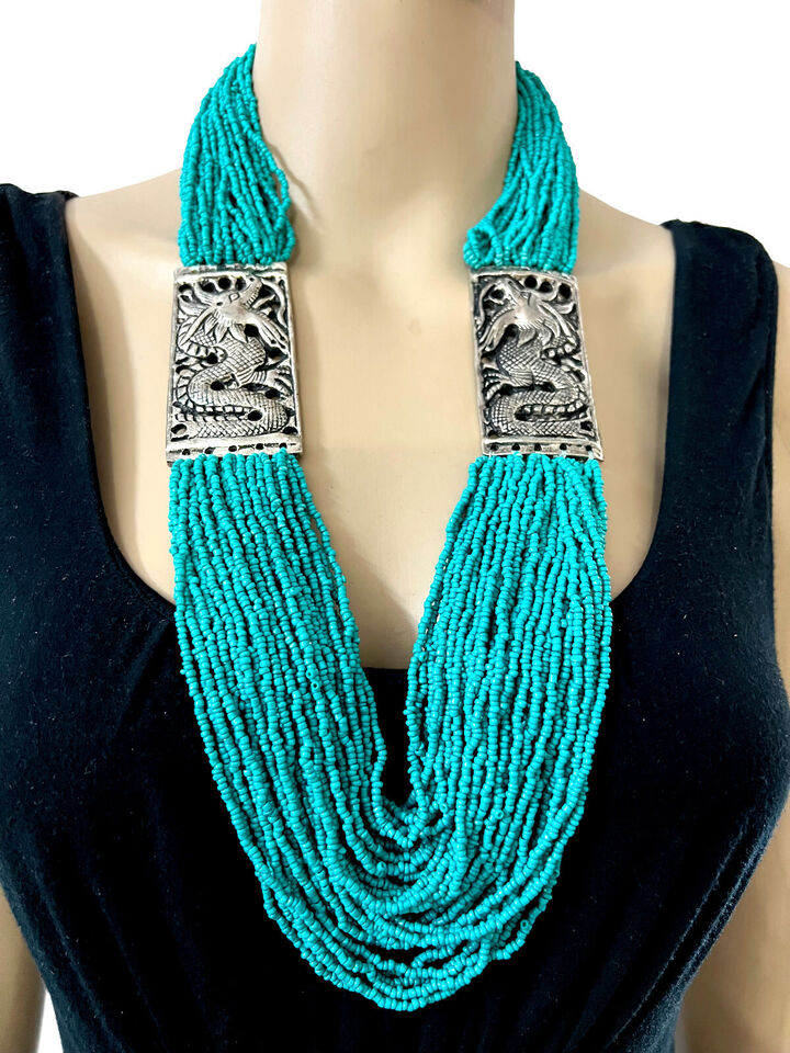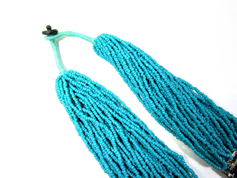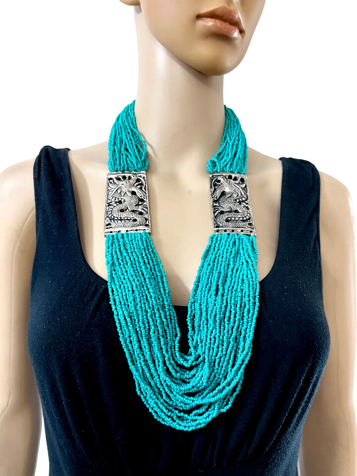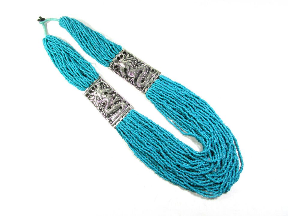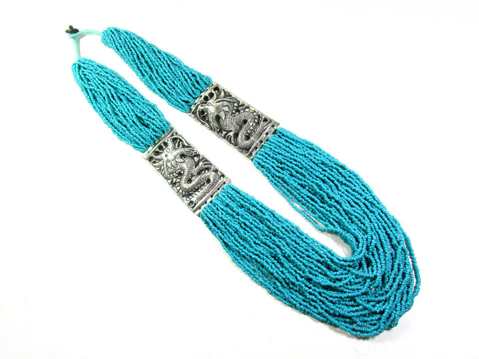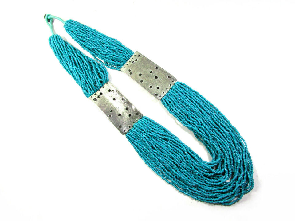 It is a beautiful Hand Crafted Turquoise color glass beads multi strand Necklace (Brand new) from India.