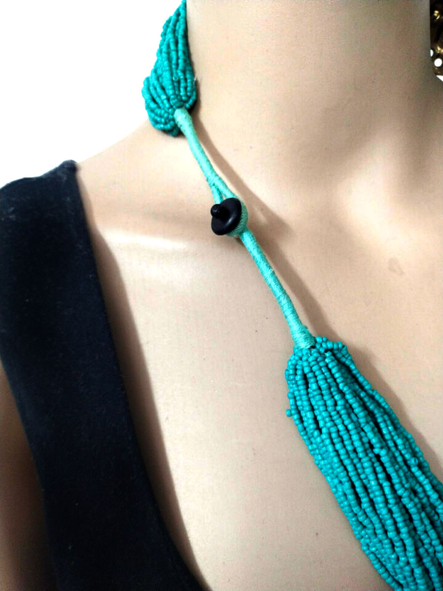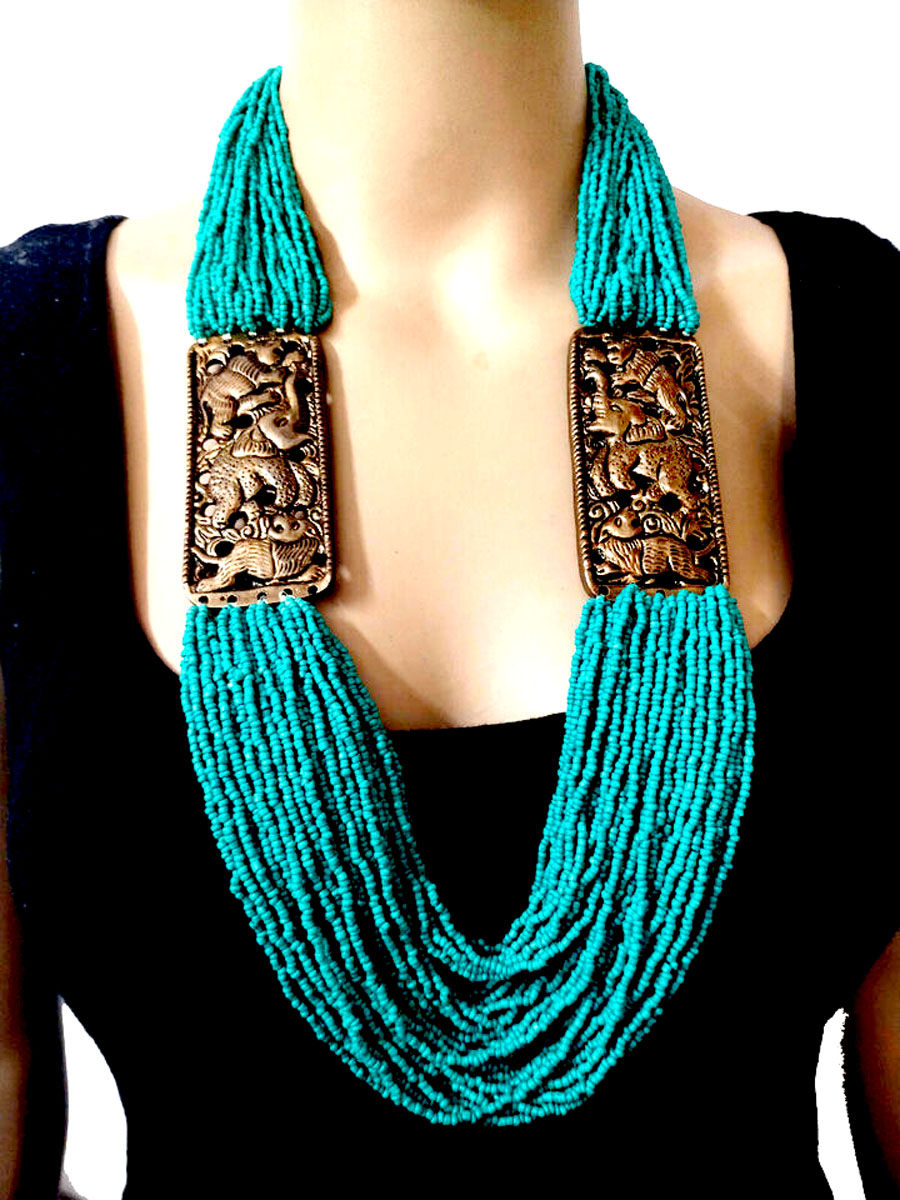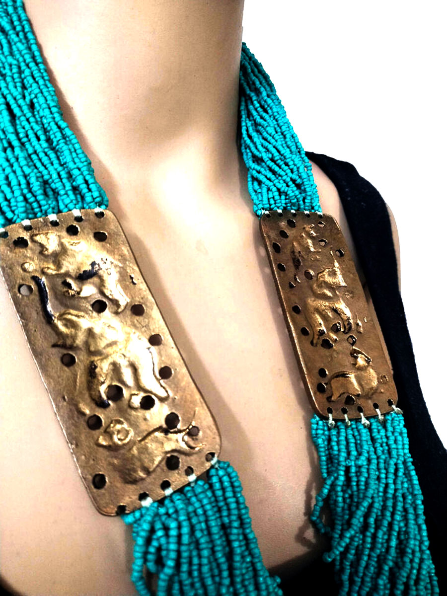 This necklace is not just an accessory but a statement of culture and style, ideal for those who appreciate artisanal craftsmanship and bold, eye-catching designs.