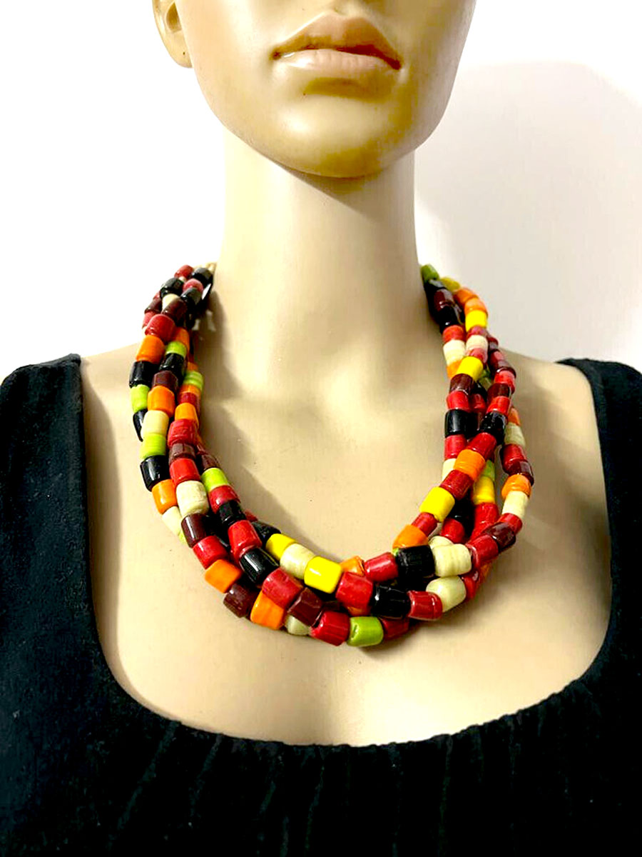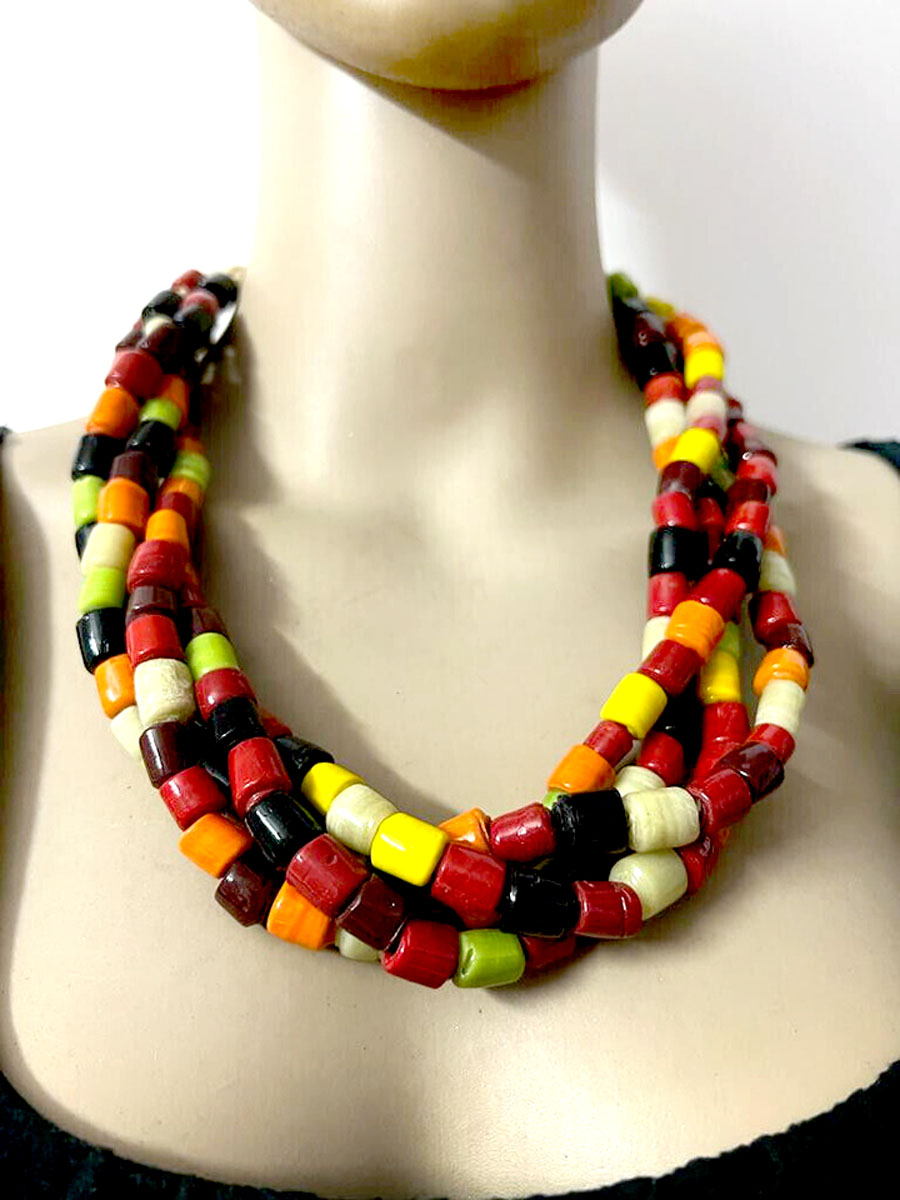 A beautiful and vibrant glass bead multi-color strand Naga Tibetan necklace!