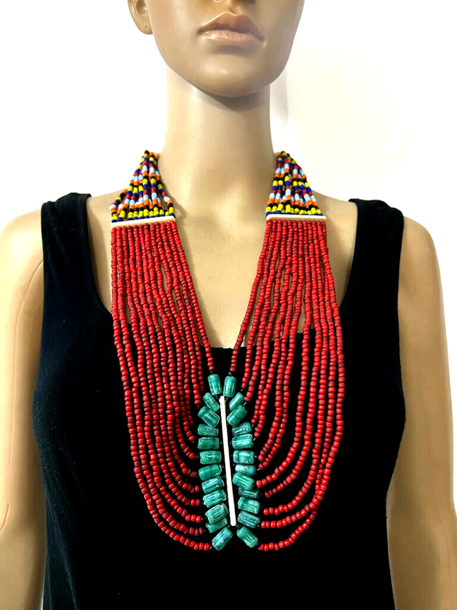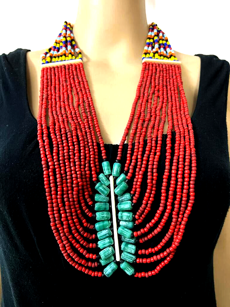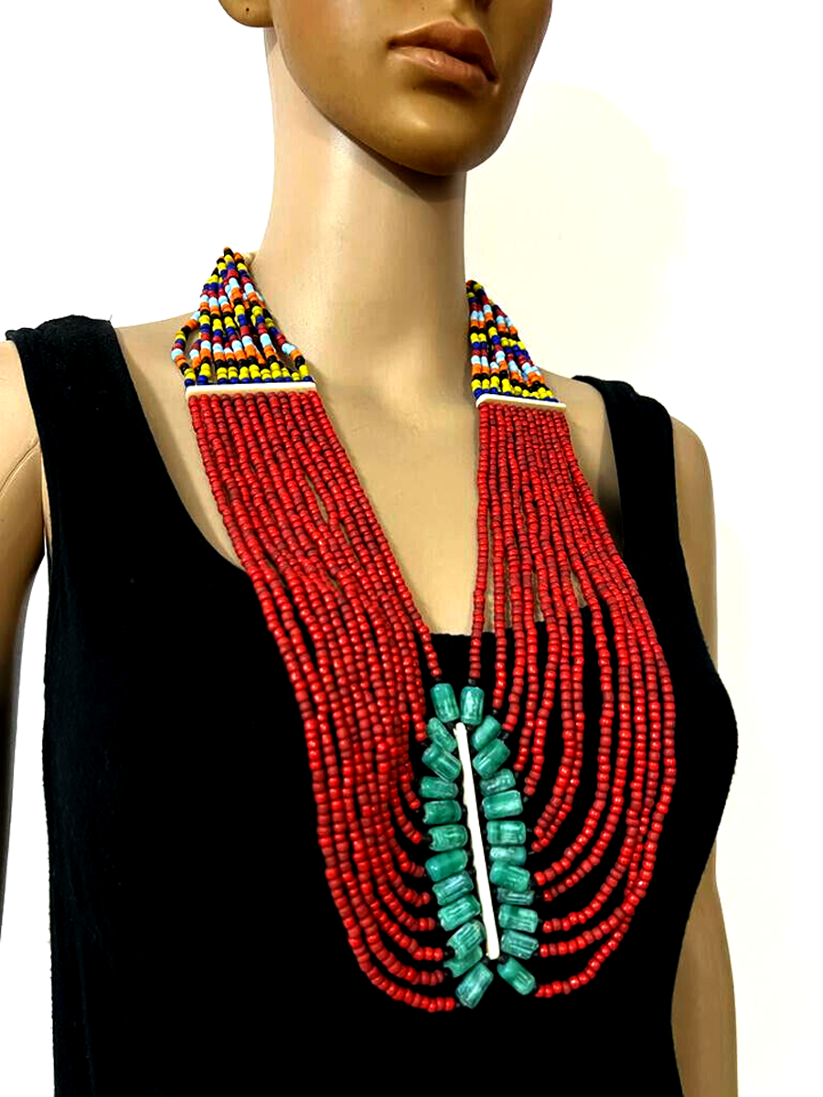 This is a gorgeous multi color design 12 multi strand Necklace worn by Tibetan/Tharu/Naga peoples from India/Tibet/Nepal.
