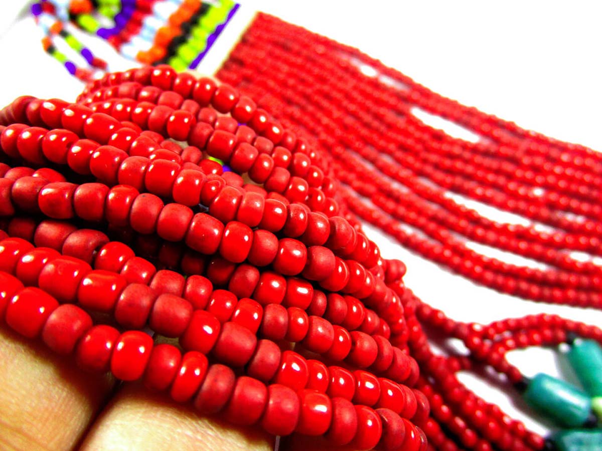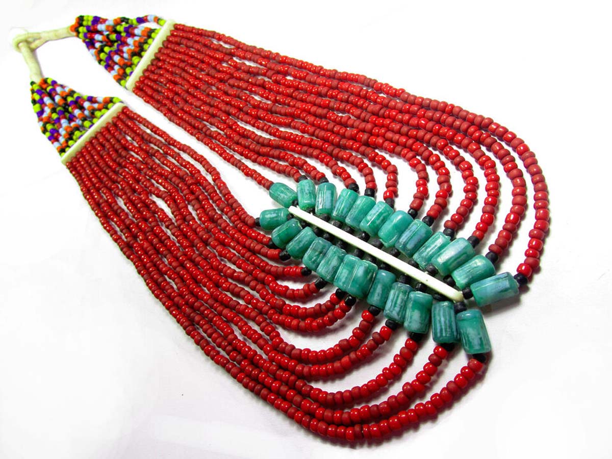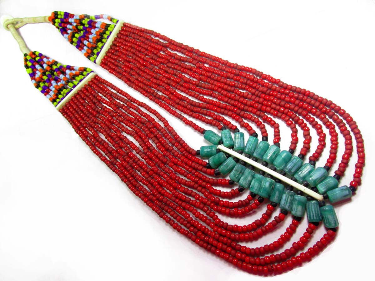 This is a gorgeous multi color design 12 multi strand Necklace worn by Tibetan/Tharu/Naga peoples from India/Tibet/Nepal.