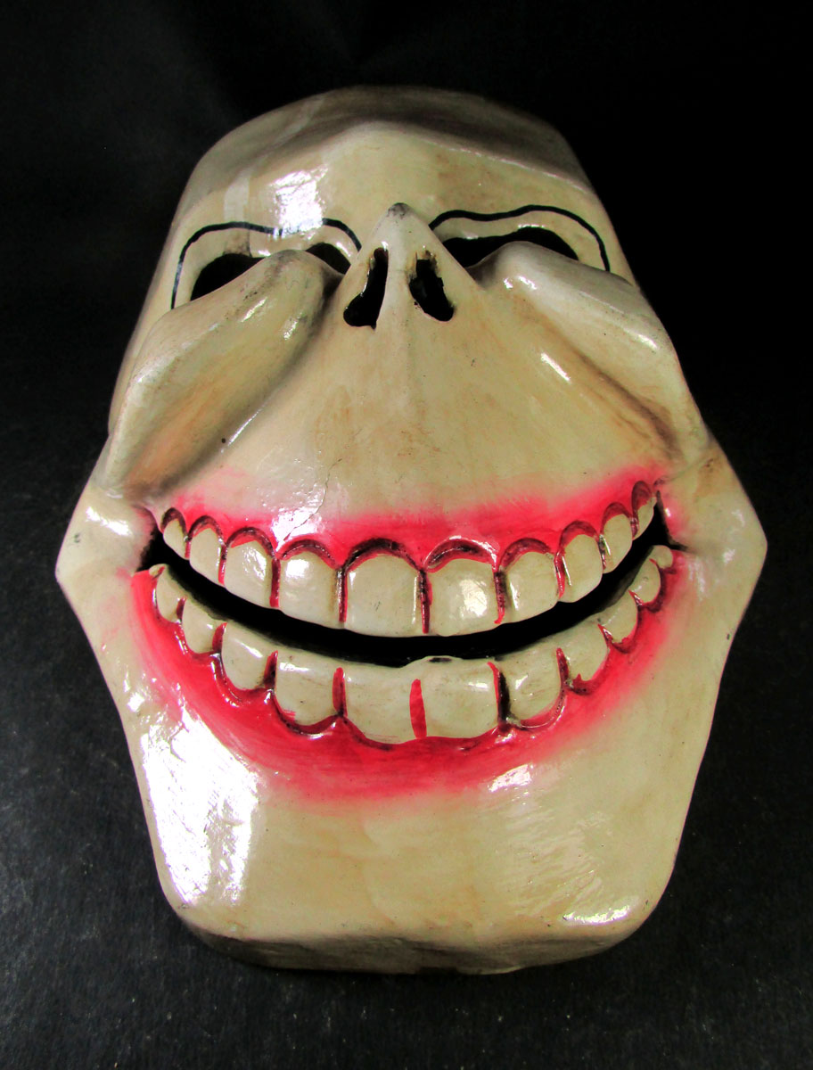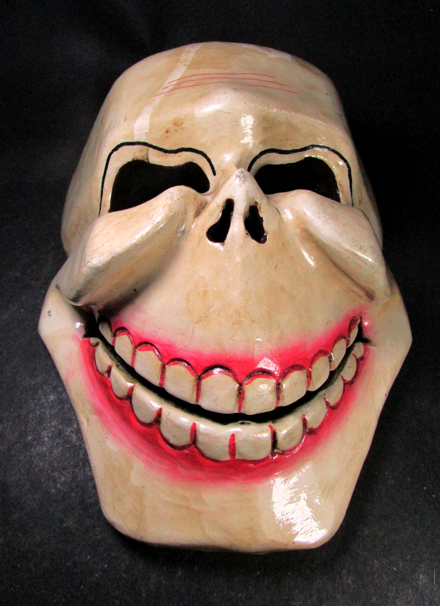 Every mask is individually handcrafted, giving it its own personality, expression, and finish. The Joker-style facial structure adds a playful yet eerie twist to the traditional skull mask used in ritual ceremonies.