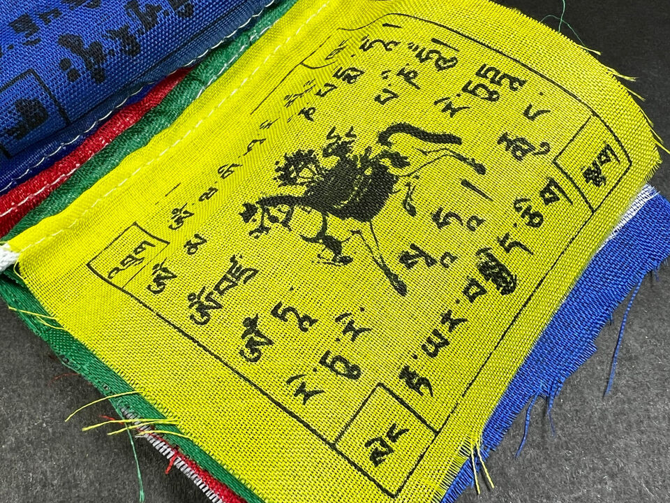 The flag is a string of 10 flags, each with a different Tibetan fundamental color, making it a stunning and eye-catching addition to any home or meditation space.