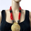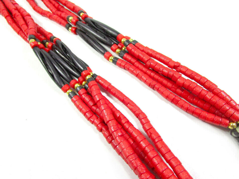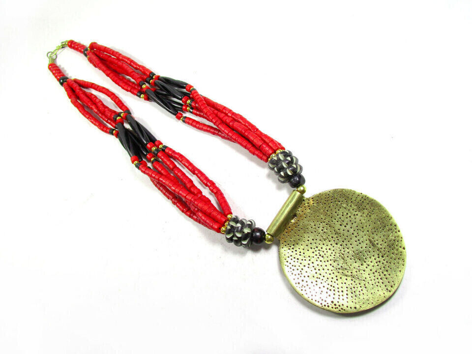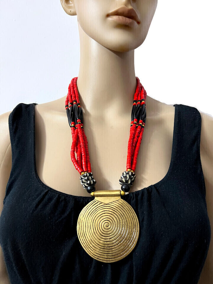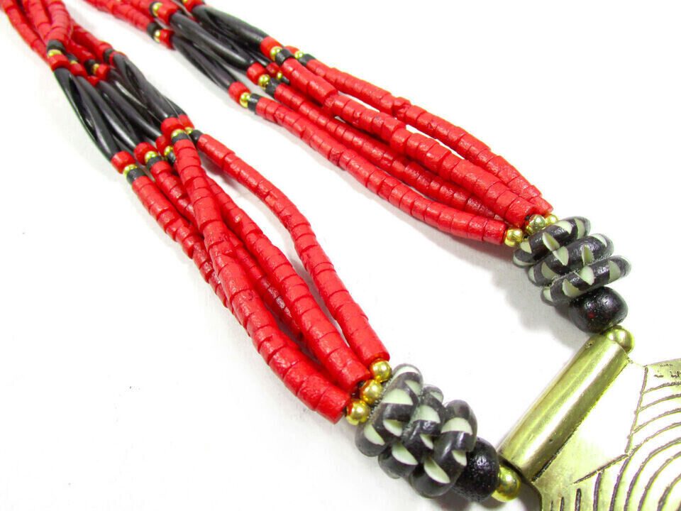 This is a gorgeous Tibetan Bovine bone beads with center spiral solid silver tone pendant. This is an ethnic motifs worn by Naga and Tribal people from other parts of India (Brand new).