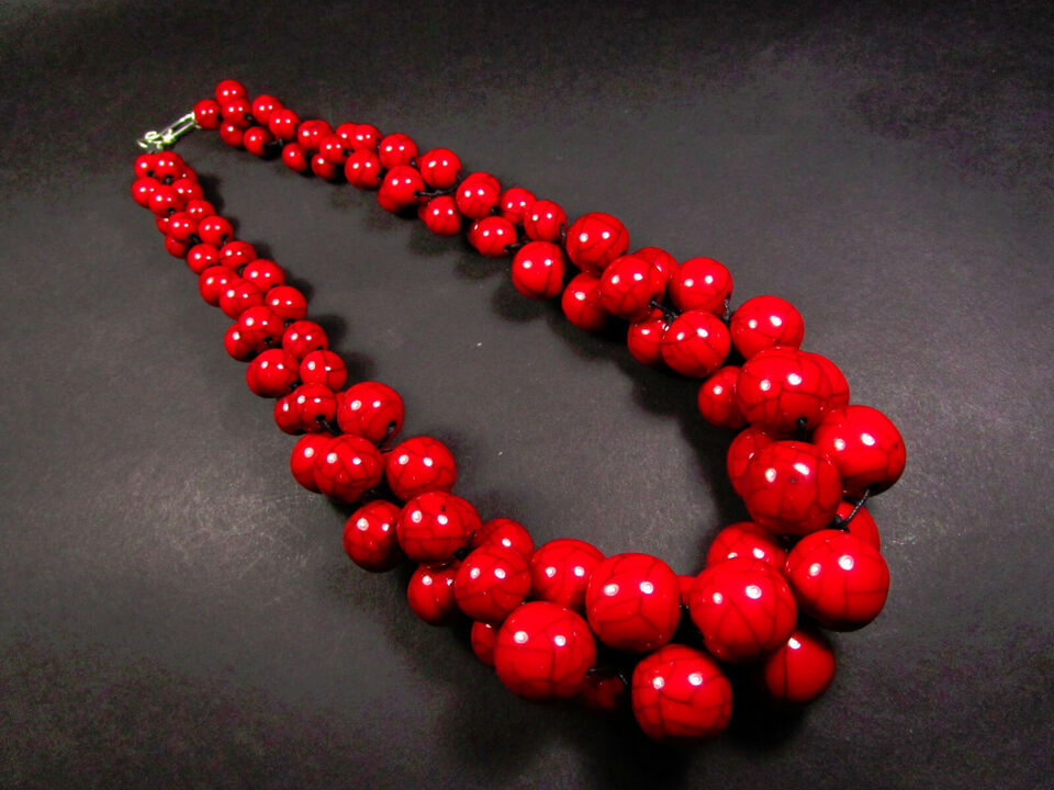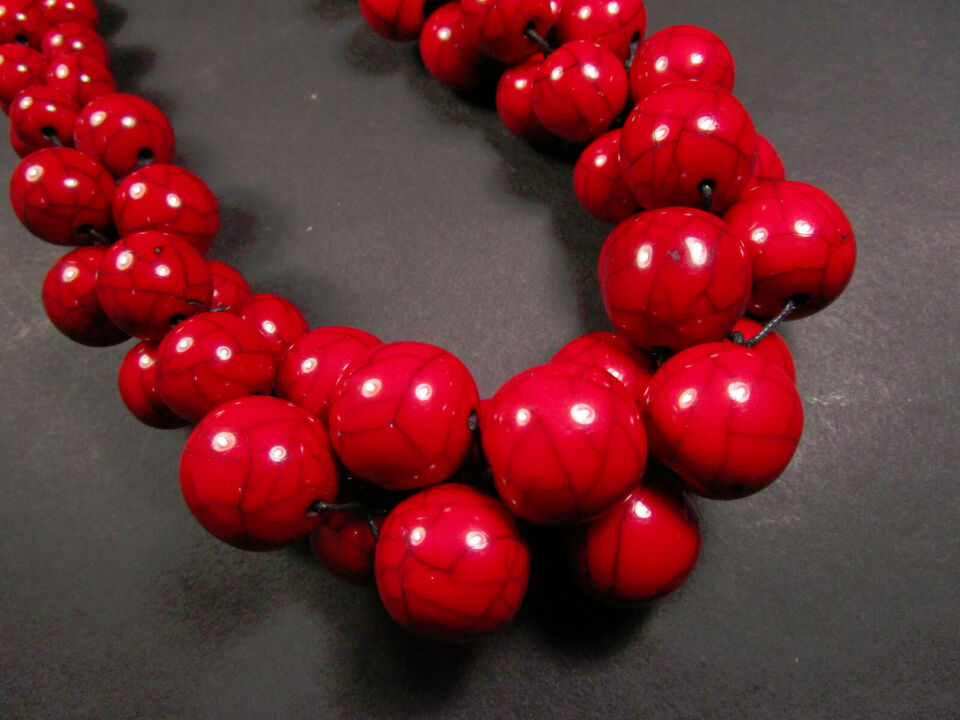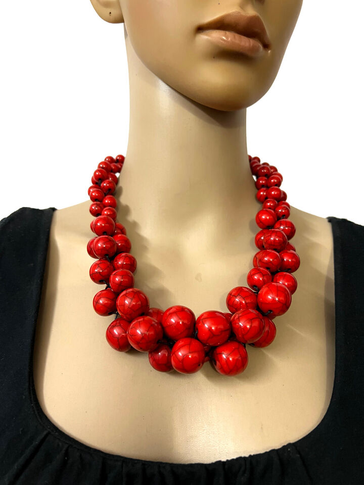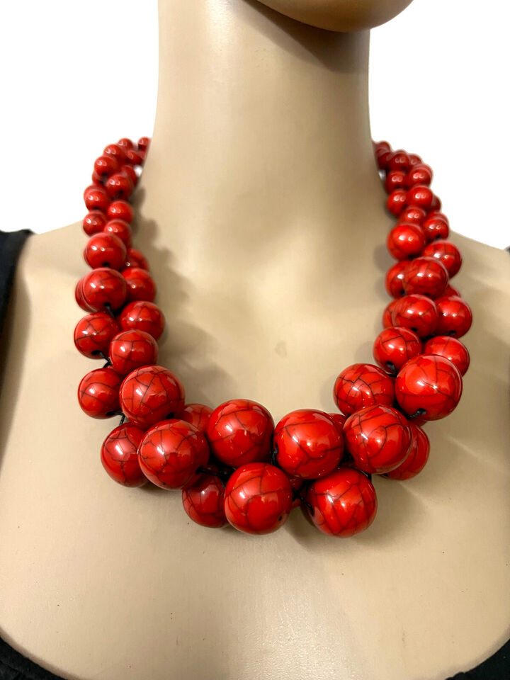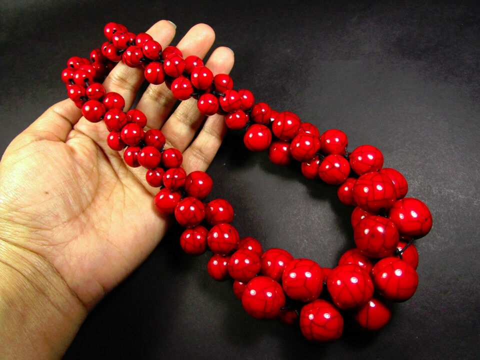 Tribal Fashionable Red Color Resin Beads Necklace
