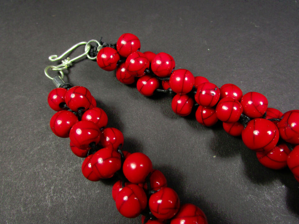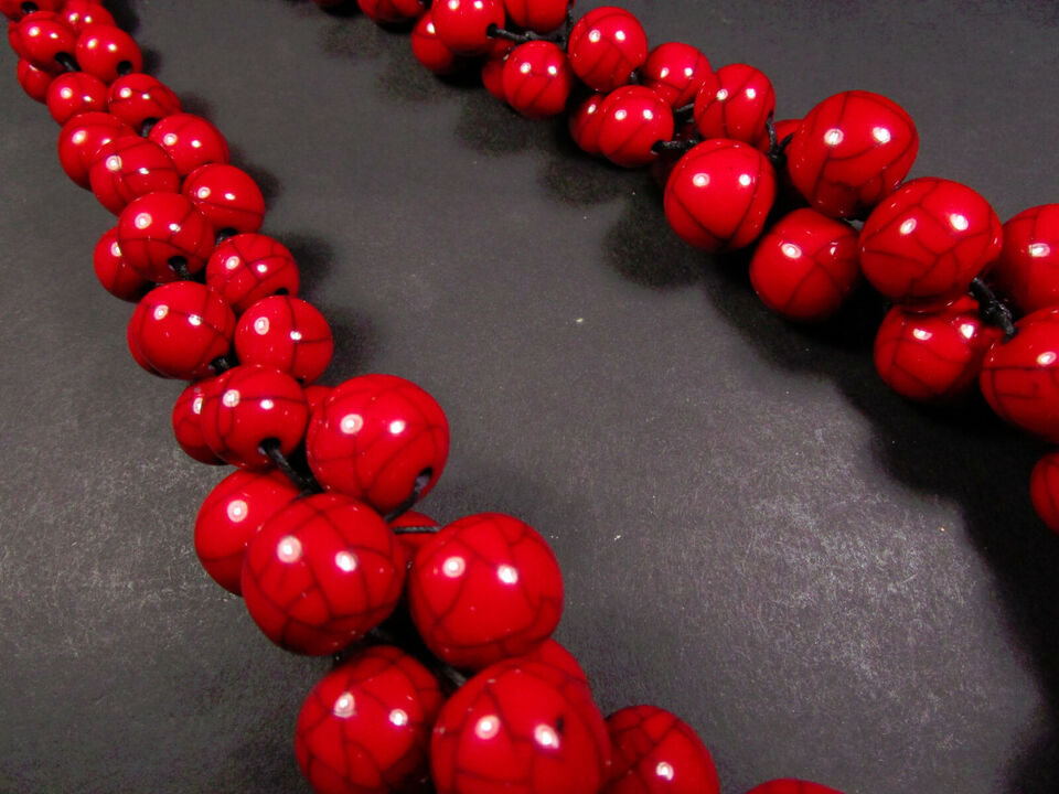 Elevate your style with this stunning Tibetan-inspired red color necklace, handcrafted in India. This bold, fashion-forward piece features vibrant Bold Red color resin beads meticulously braided with a sleek black cord. The combination of colors creates a unique and eye-catching design that's both elegant and distinctive.