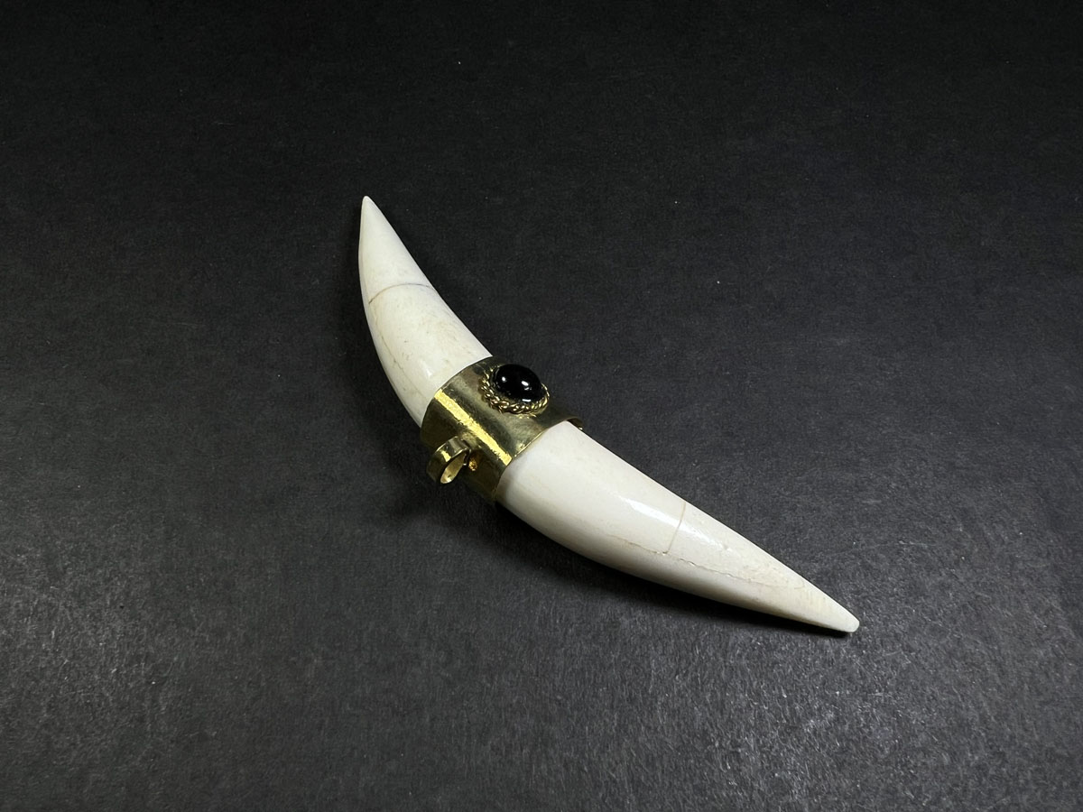 This exquisite pendant necklace features a handmade tooth-shaped bone pendant, crafted from natural bone material. The pendant is carefully shaped to resemble a Animal tooth, with intricate details and textures that give it a lifelike appearance.