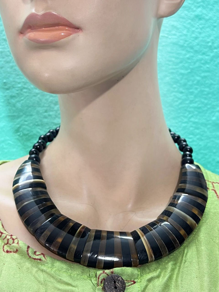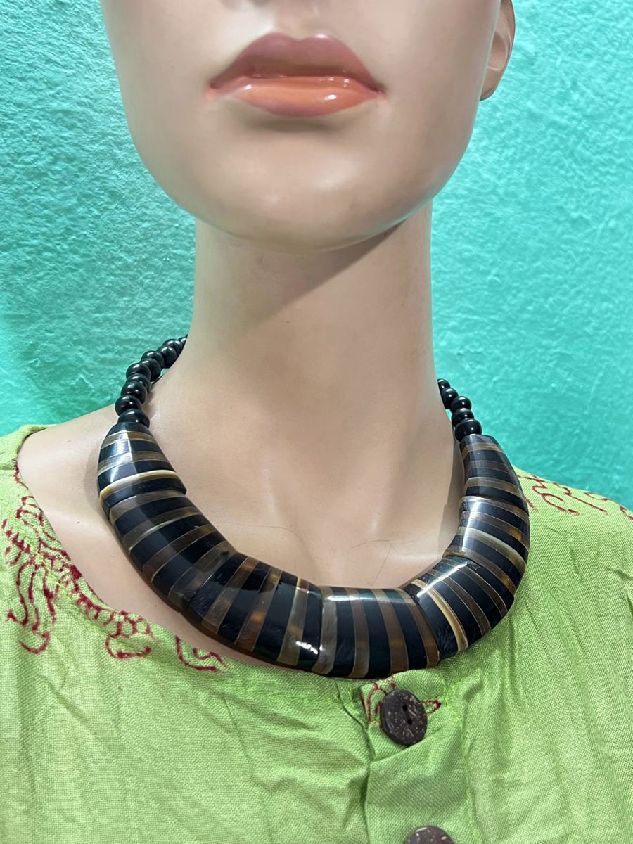 It is an Ethnic Tibetan, tribal Naga design gypsy Necklace. The necklace are made Horn pieces.