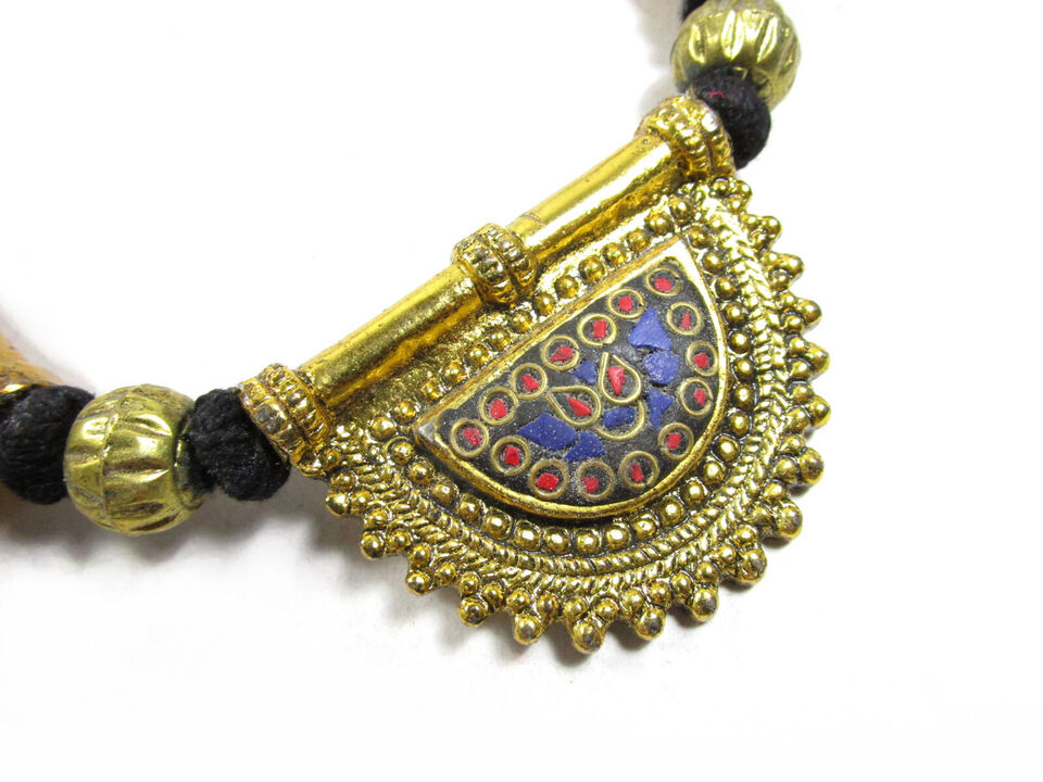 The Pendant Pieces are solid Brass tone with tribal mosaic.