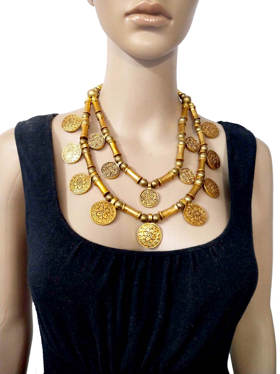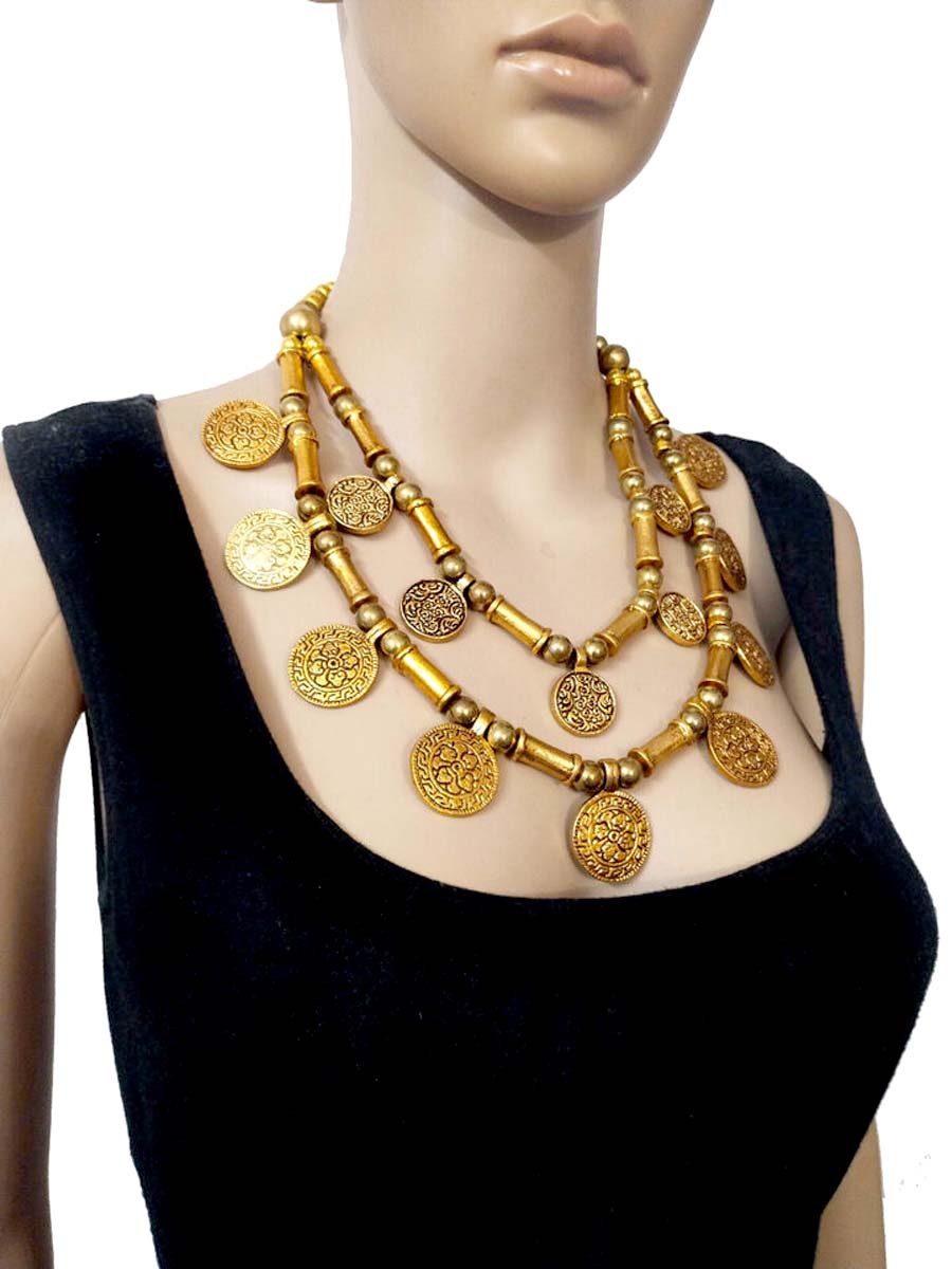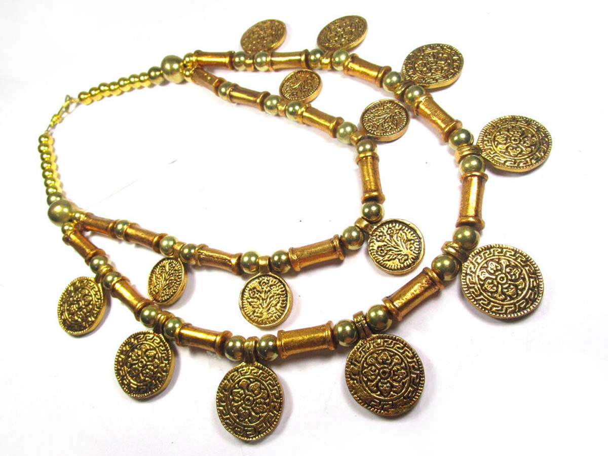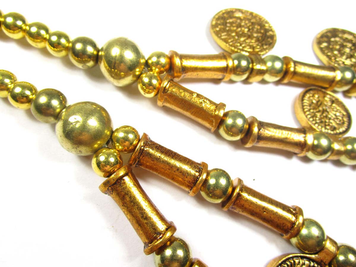 This is an ethnic tribal 2 strand Golden tone Metal coin & beads handmade Necklace from India.