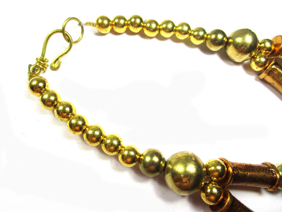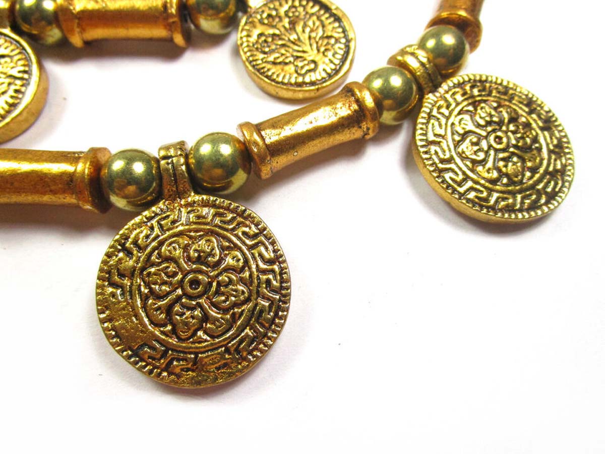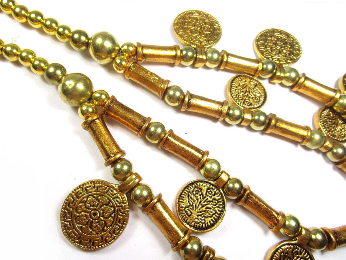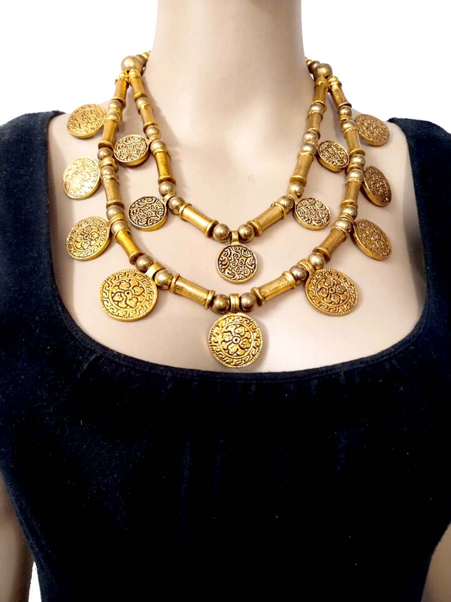 This is an ethnic tribal 2 strand Golden tone Metal coin & beads handmade Necklace from India.