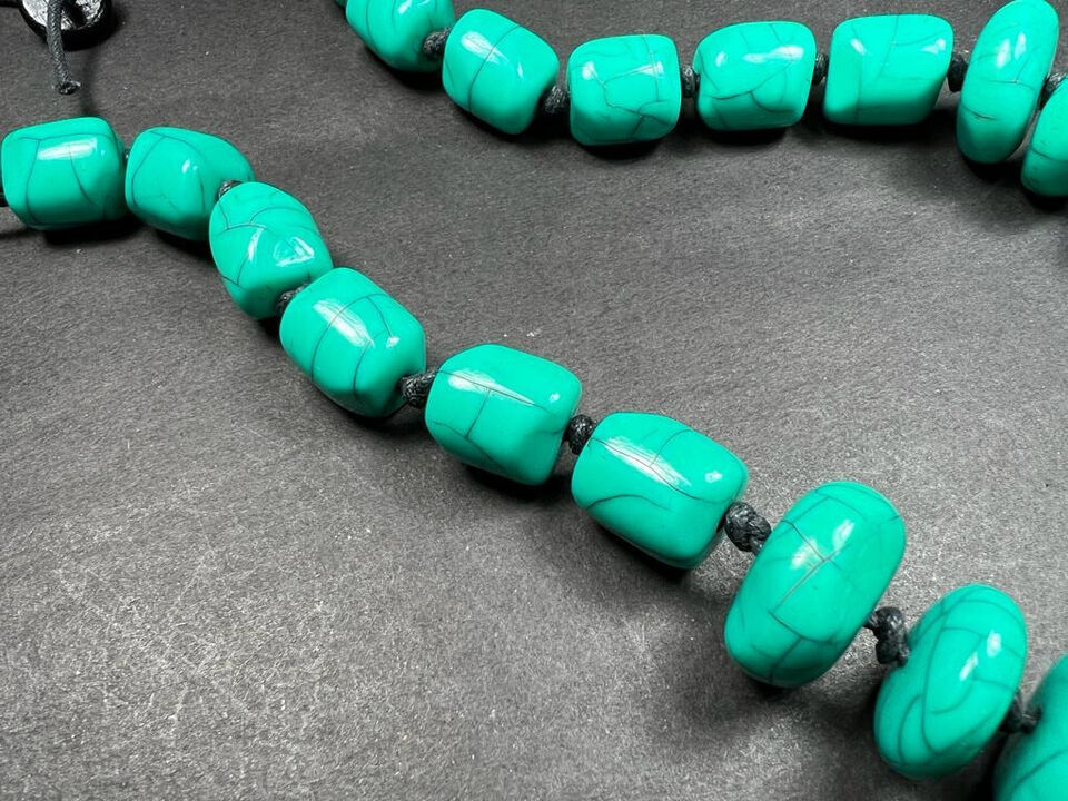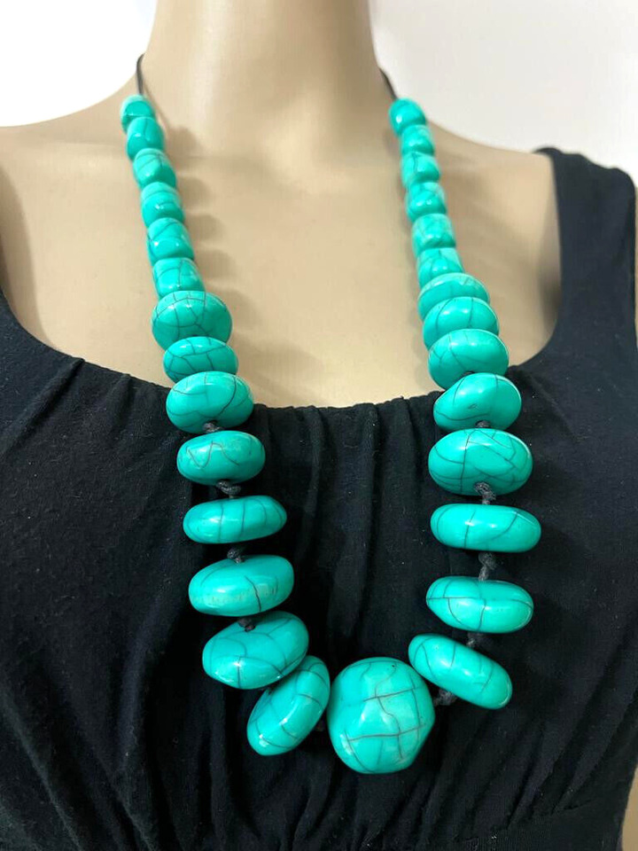 This is a long style Turquoise color resin bold beads necklace (Brand new) from India.