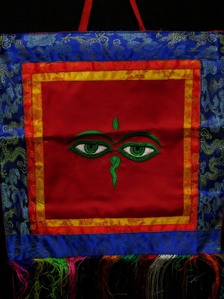 This is a beautiful silk brocade wall hanging from Nepal. At the center Buddha Eye image is embroidered, there is a high quality brocade border. They are handmade by the highly skilled and experienced local artisans in Nepal.
