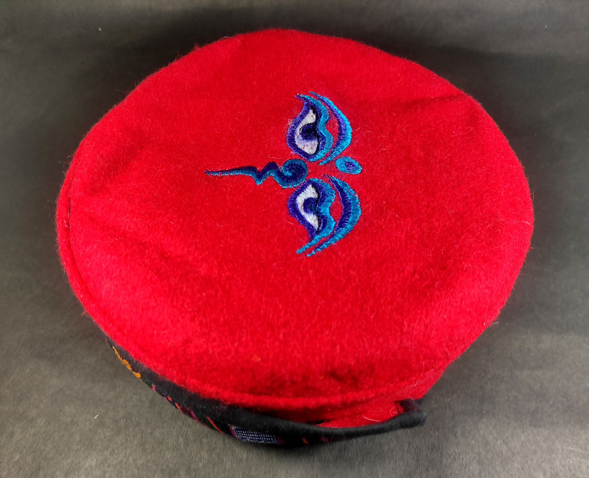 The traditional Sherpa cap from Nepal is a iconic and warm accessory worn by the Sherpa people, who are indigenous to the Himalayan region. The cap is made from wool or yak hair, and is designed to keep the wearer's head and ears warm in the cold climate of the high mountains. The cap typically features a rounded shape with a pom-pom on top, and is often adorned with colorful tassels or embroidery. The Sherpa cap is not only a functional piece of clothing, but also a symbol of cultural heritage and identity for the Sherpa people, who are known for their expertise in mountaineering and their ability to thrive in the harsh conditions of the Himalayas.