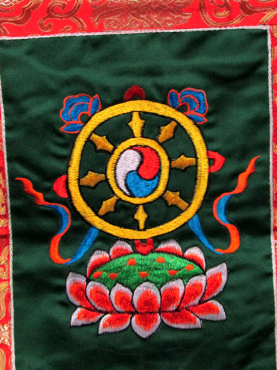 - Tibetan Dharmachakra or Wheel of Dharma Embroidered Brocade Thanka Thangka Wall Hanging Nepal - Th160