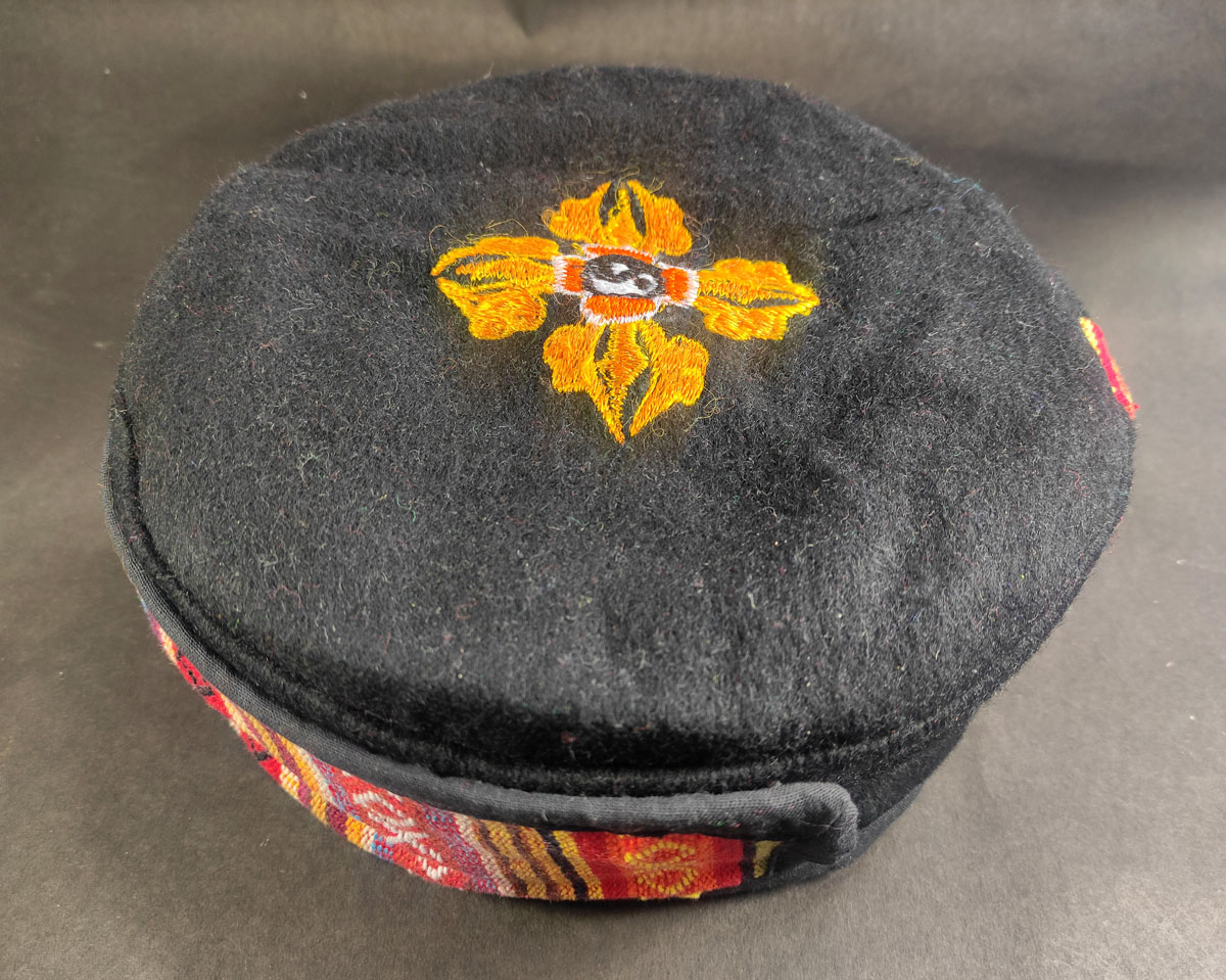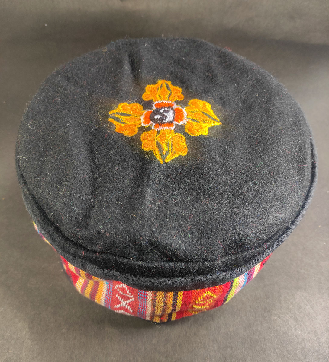 This is a unisex traditional handmade embroidered Sherpa cap/hat from Nepal worn by the mountain people in Himalayan area. It gives you warmness in your head. It has black cotton inner fleece inside a cap. It can also use as ear flap cap.