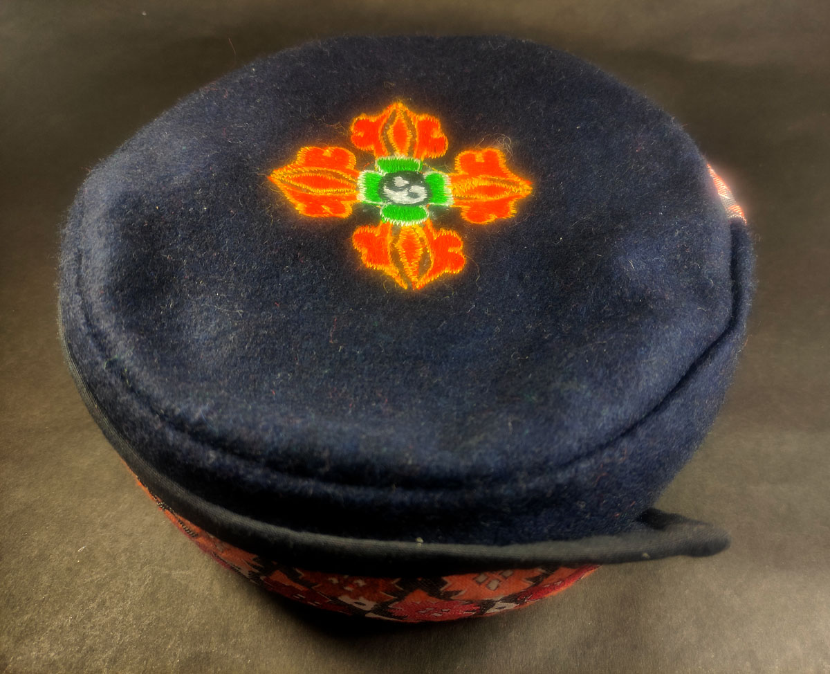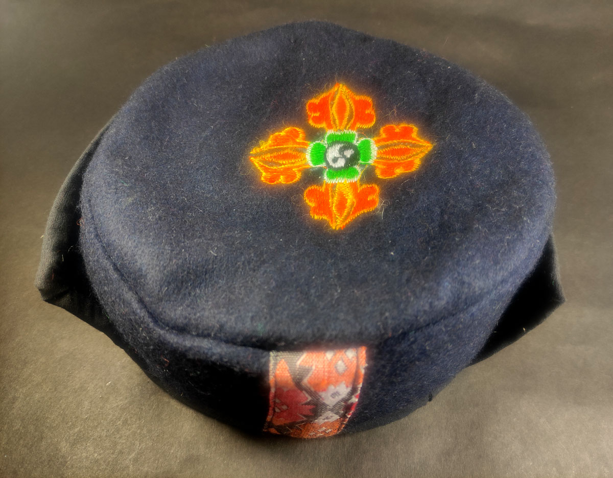 Double Dorje embroidered cap: