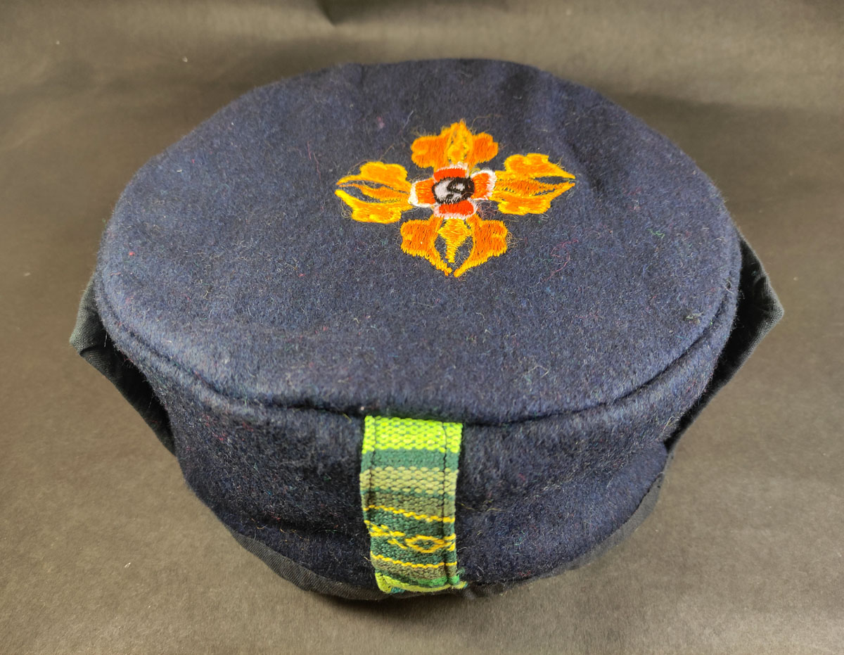 The traditional Sherpa cap from Nepal is a iconic and warm accessory worn by the Sherpa people, who are indigenous to the Himalayan region. The cap is made from wool or yak hair, and is designed to keep the wearer's head and ears warm in the cold climate of the high mountains. The cap typically features a rounded shape with a pom-pom on top, and is often adorned with colorful tassels or embroidery. The Sherpa cap is not only a functional piece of clothing, but also a symbol of cultural heritage and identity for the Sherpa people, who are known for their expertise in mountaineering and their ability to thrive in the harsh conditions of the Himalayas.