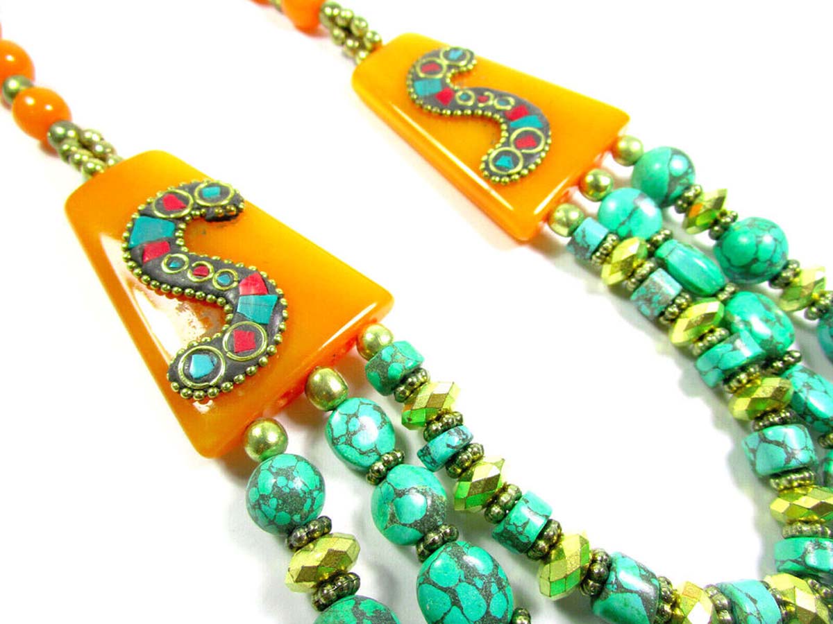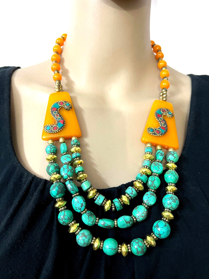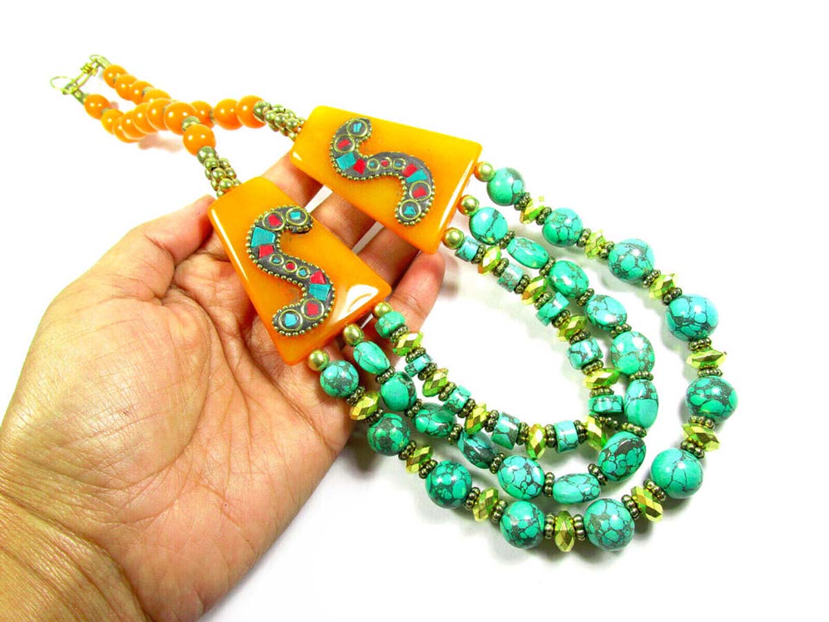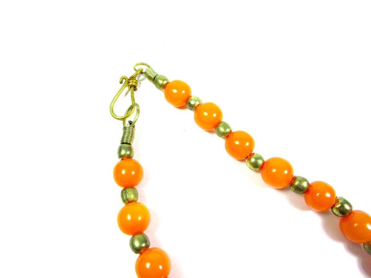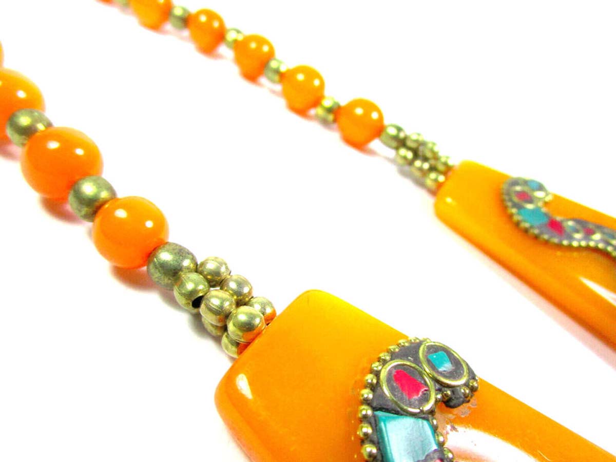 It is an ethnic Naga, Tibetan, Bold Orange color resin Amber look Necklace handmade from Nepal.