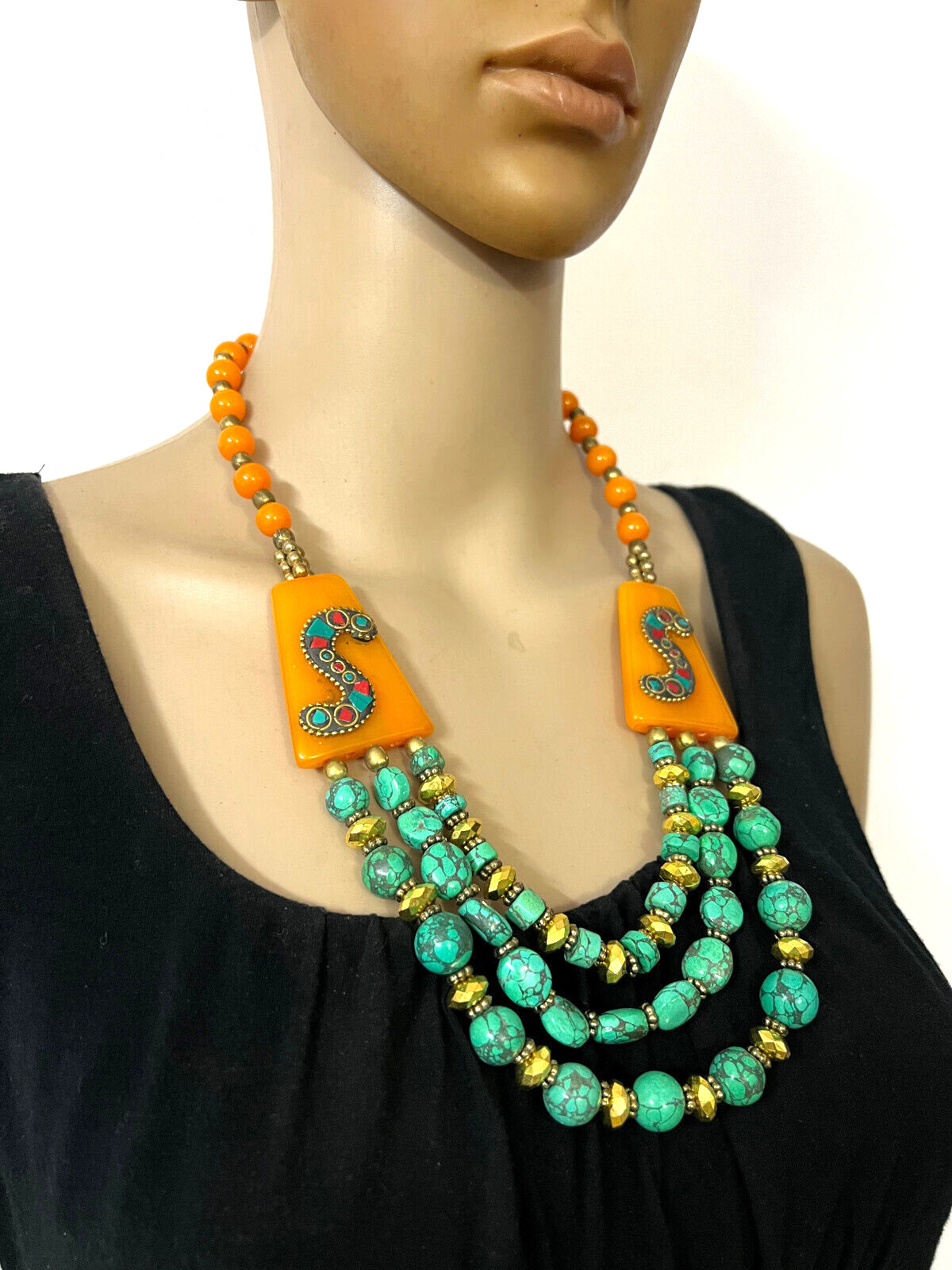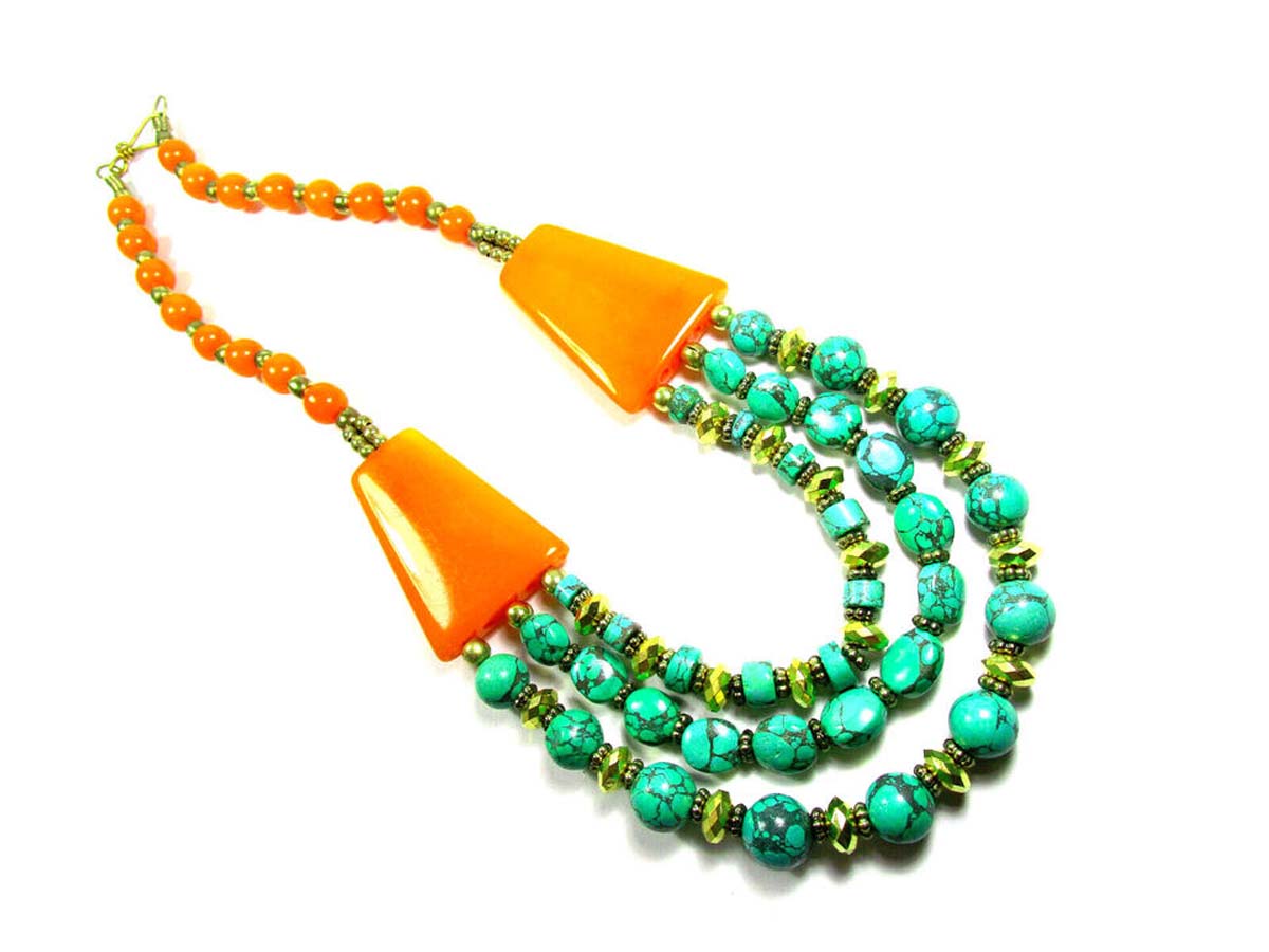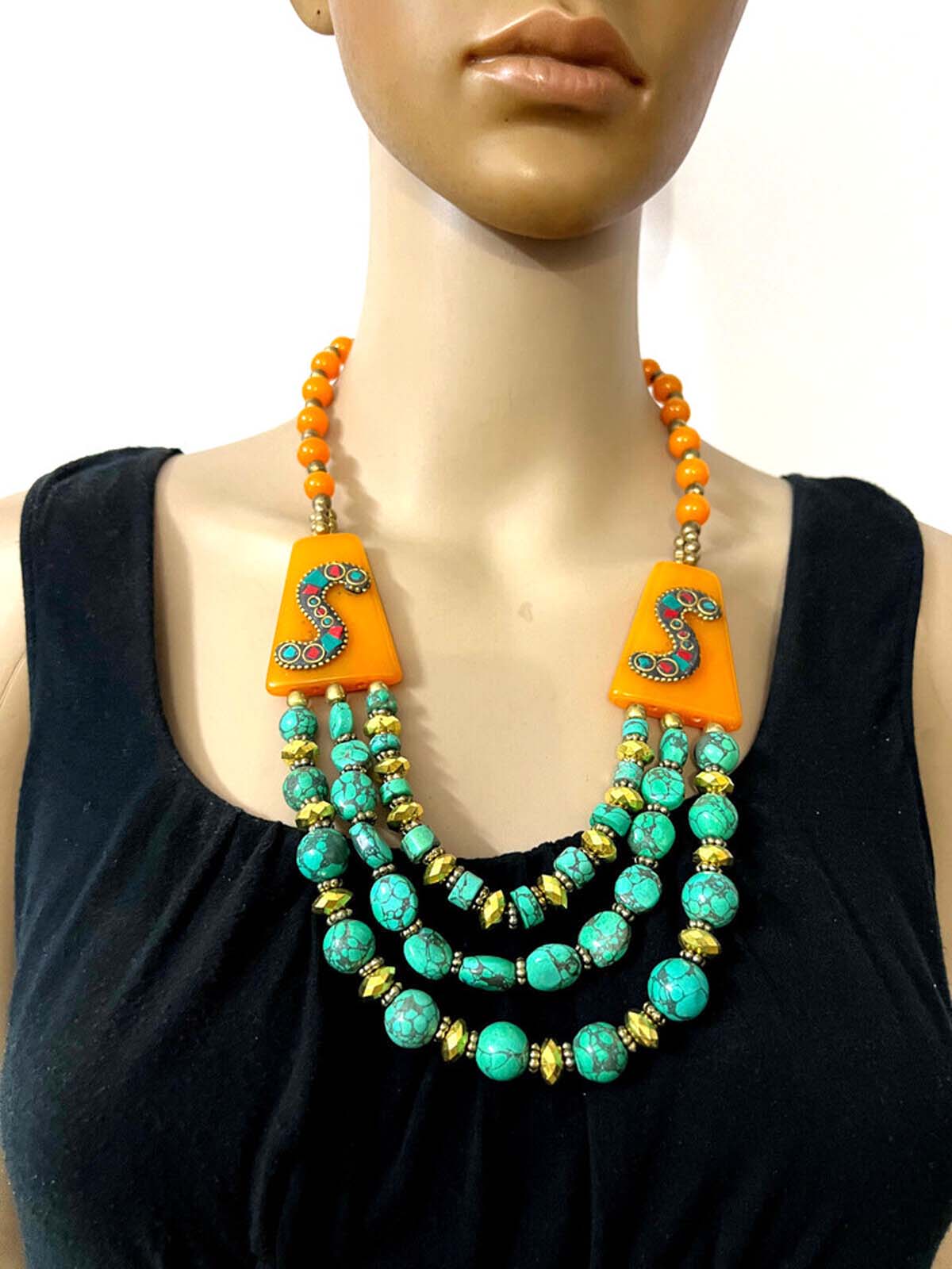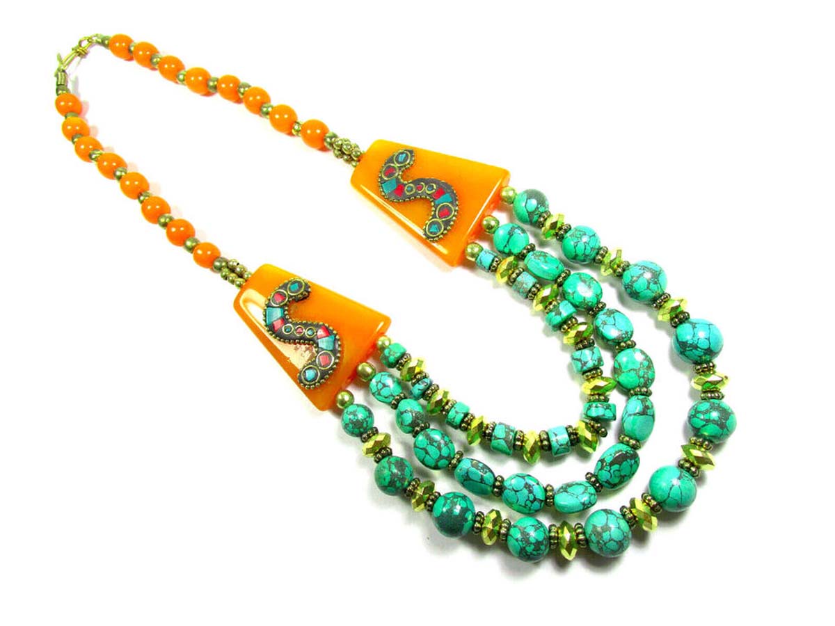 It is an ethnic Naga, Tibetan, Bold Orange color resin Amber look Necklace handmade from Nepal.